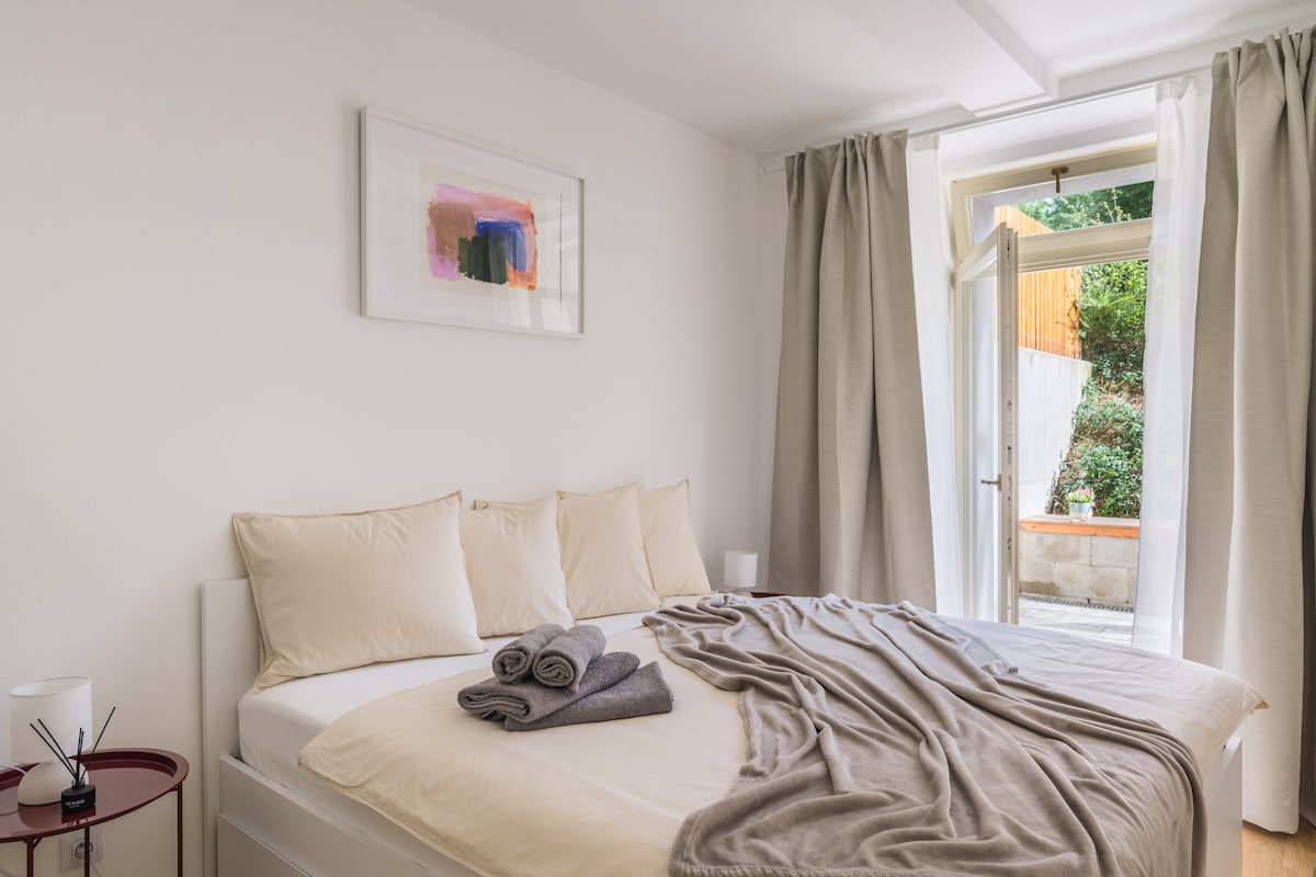 We offer exklusive newly renovated sunny appartment, located in a quiet and safe residential area with garden view. The appartment is an ideal place for unforgettable stay in the capital city of Prague. You can admire the Prague Castle (Pražský hrad), the Old Town Square (Staroměstké náměstí), The Loreto, The Petřín hill and other important sights of the capital city of Prague. The appartment is close to the nature - The natural park Divoka Sarka is nearby (10 minutes walk).