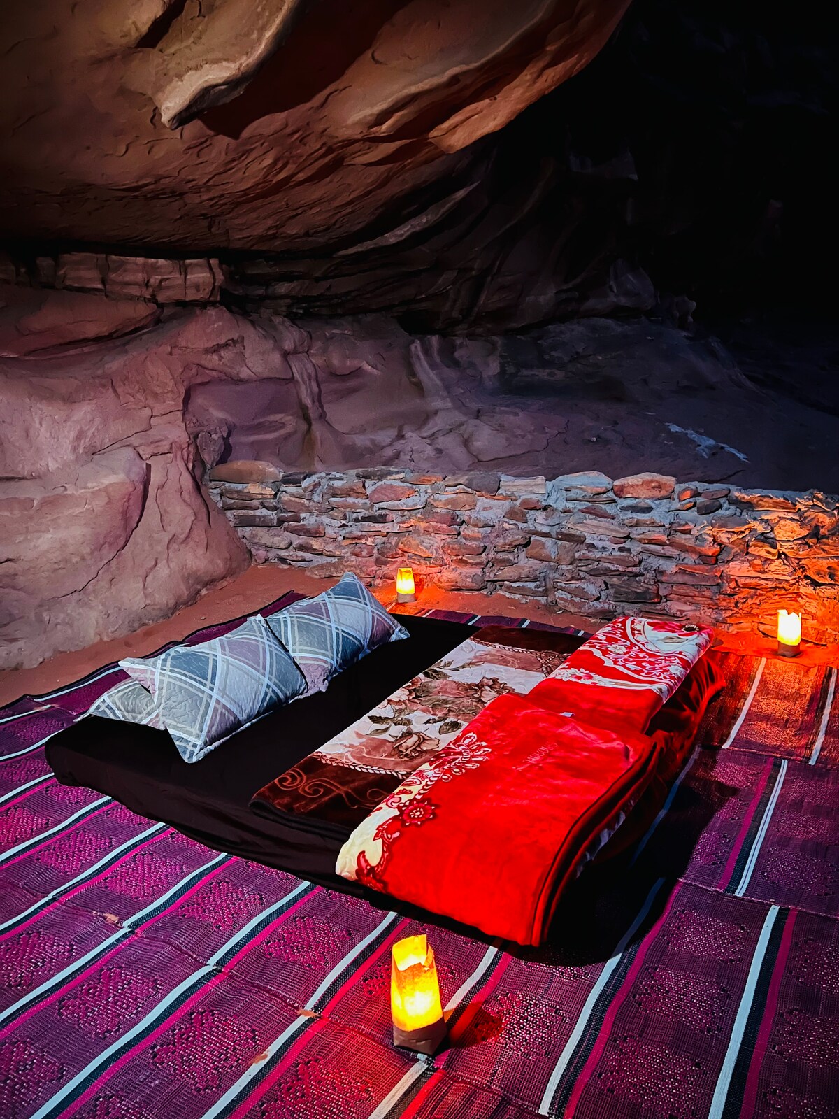 와디럼 사막의 동굴에서 별빛 아래 잠자기 + 투어