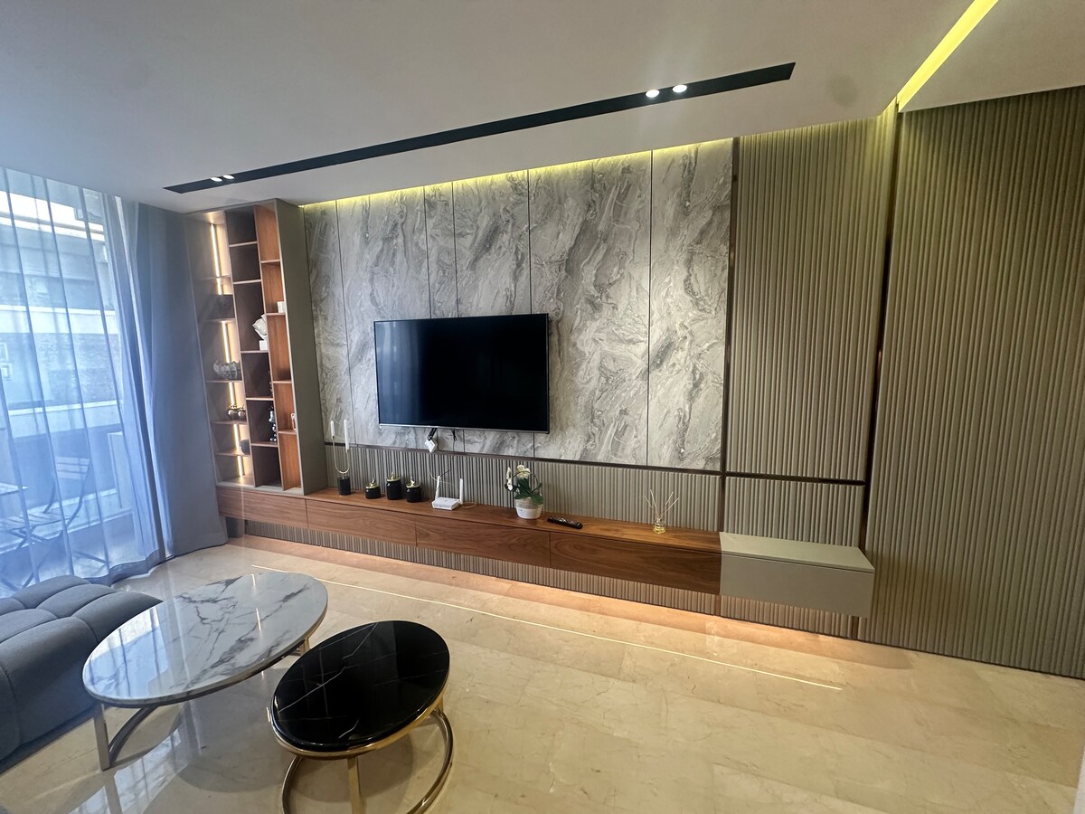 현대적이고 세련된 편안함을 제공하는 우아하고 넓은 아파트를 만나보세요. 햇살이 가득 드는 44m²의 넓은 테라스에서 일몰을 감상하실 수 있습니다. 거실에는 75인치 곡선형 LED TV가 있어 어둡고 아늑한 분위기를 연출합니다. 55인치 TV가 설치된 침실, 욕실 2개, 주방, 에어컨/난방 시설. 24시간 경비원이 있는 주차장이 있는 최신식 건물에 위치하고 있습니다. 기차역(공항 연결)과 트램 근처의 편리한 위치.