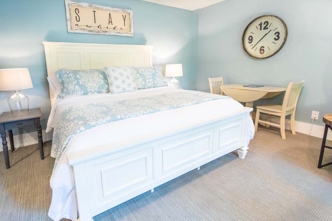 5호실은 트리하우스라고 알려진 400sf 킹 스위트입니다. 럭셔리 매트리스, 이탈리아 침구, 맞춤형 월넛 헤드보드, 애팔래치아 직물 및 펜들턴 담요, 분위기 있는 좌석 공간, 가스 벽난로, 평면 스크린 TV, 완비된 간이 주방, 미니바, 미니 냉장고, 빈티지 타자기 및 레코드 플레이어를 즐겨보세요. 아날로그가 모든 것이었던 시절로 돌아가보세요! 난방 바닥, 고급 가운, 고급 세면도구, 놀라운 수압의 워크인 샤워실이 있는 아름다운 욕실을 즐겨보세요.