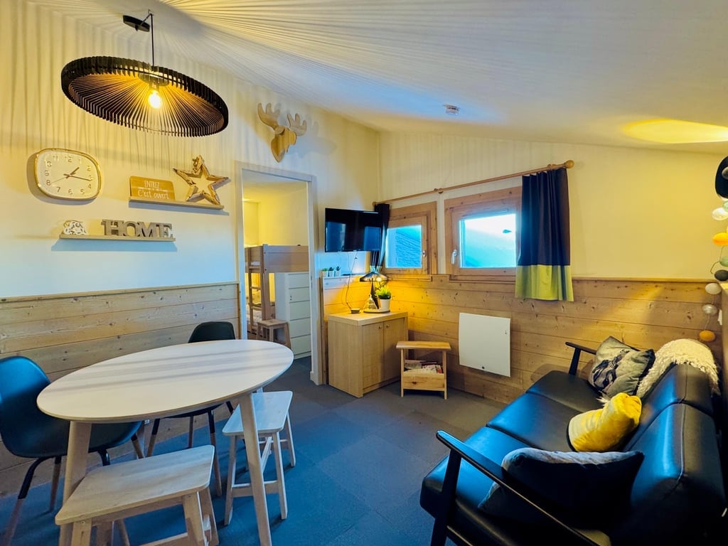 작은 남향 테라스가 있는 24m2의 사랑스러운 스튜디오로 두 부분으로 나뉩니다! 파라디스키 스키 지역의 중심에 위치한 아름다운 산 전망. 슬로프에서 200m 떨어진 라 플라뉴 1800에 위치하여 여름과 겨울에 즐길 수 있는 다양한 액티비티를 즐길 수 있습니다. 2명에게 이상적이며 4명이 가능합니다. 지붕이 있는 주차 공간은 임대료에 포함됩니다. 여름과 겨울 리조트의 개장일에는 온수 수영장을 이용할 수 있습니다.