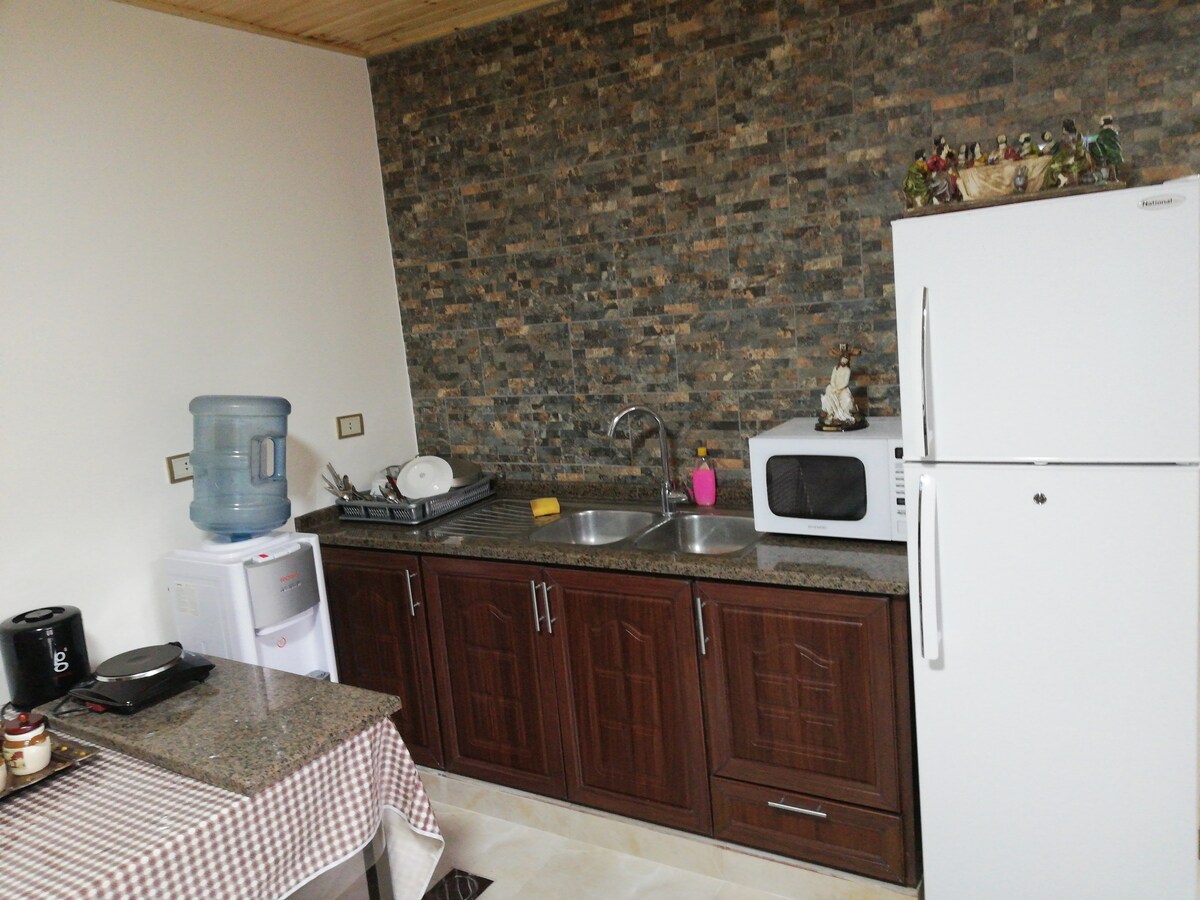 안녕하세요. 지하실에 위치한 아늑한 아파트에 머무르실 수 있습니다. 이 아파트는 상점과 베이커리에 가까운 안전한 지역에 있습니다. 거리에서 무료 주차장을 쉽게 찾을 수 있습니다. 직접 만든 식사가 합리적인 가격에 제공됩니다. 요청 시 공항 교통편을 제공할 수 있습니다. 세인트 조지스 교회에서 약 1km 떨어진 마다바 시내에 위치 (모자이크 지도) * 교통이 편리합니다. * 레스토랑과 가까움 * 공항에서 20 ~ 25분 - 다운타운까지 5분 * 신상 가구 * 와이파이 * 수건, 비누 사용 가능