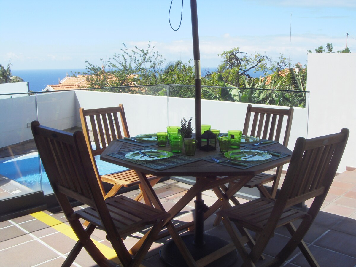 끝없는 대서양이 내려다보이는 화산 절벽에 조각된 성에서 휴식을 취하세요! 숨 막히는 일몰을 감상하며 옥상 테라스에서 전용 자쿠지를 즐겨보세요! 파노라마 바다 전망을 감상할 수 있는 마스터 스위트 침실, 잘 갖춰진 간이 주방, 거실, 멋진 2층 테라스, 아파트로 바로 이동할 수 있는 엘리베이터! 아름다운 바닷가 레스토랑과 일일 파머스 마켓이 있는 히베이라 브라바 타운의 검은 모래 해변에서 차로 단 7분 거리에 있습니다.