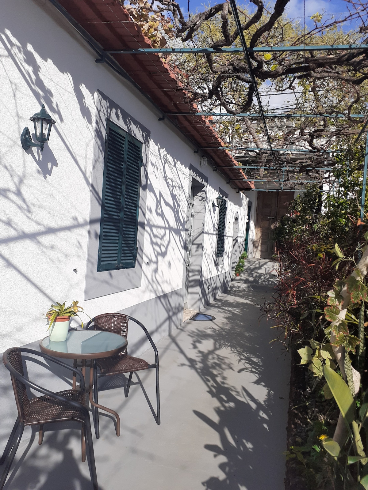 펀샬과 마데이라에서 휴가를 즐기기에 최적인 아늑한 주택, 이용 가능 시 동네와 공유하는 무료 주차장 및 유료 주차장, 숙소 내 실내 및 실외 공간. 카페, 시장, 정육점, 베이커리, 전통 과자점과 가깝습니다. 중심가에 위치한 조용한 공간에서 심플함을 즐겨보세요. 욕실은 작은 지붕이 덮인 전용 파티오를 통해 들어갑니다. 커튼이 있는 싱글 침대는 욕실 문 옆의 작은 방에 있습니다.