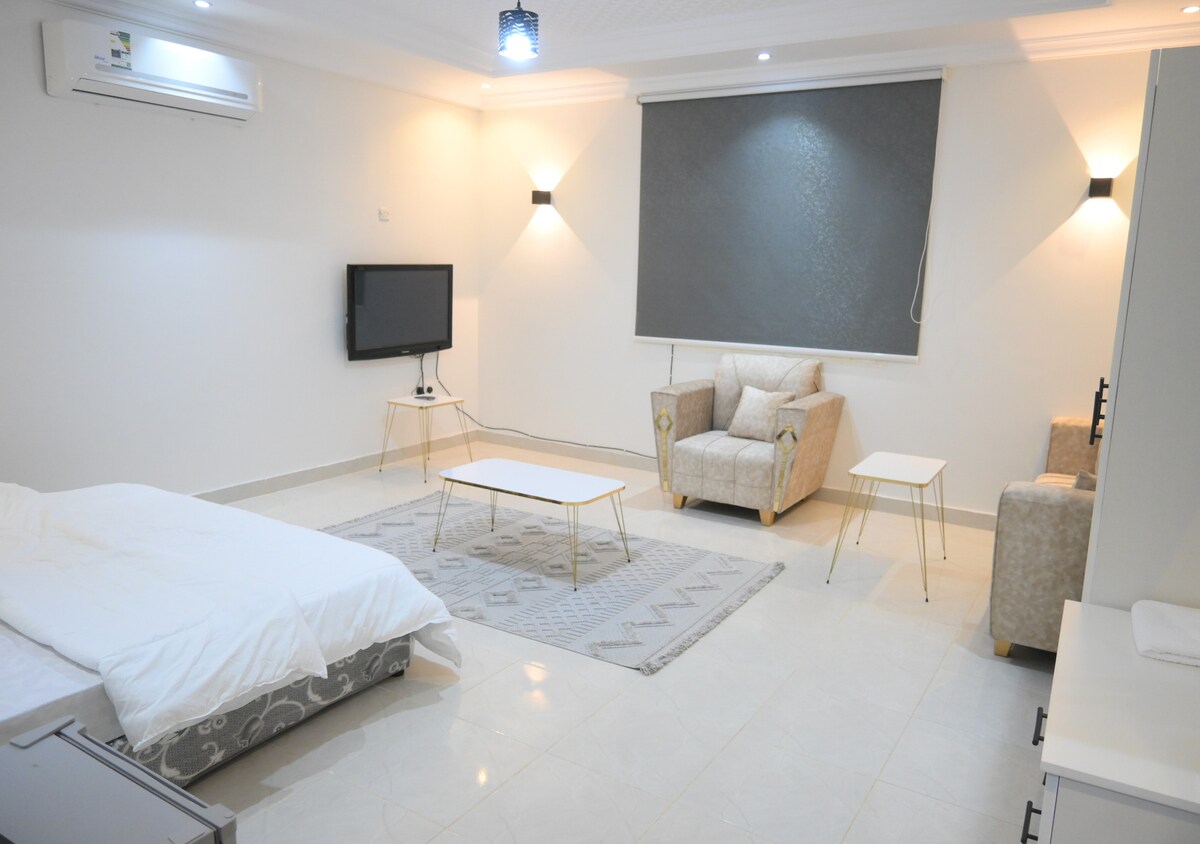 - 주방 시설을 완벽하게 이용할 수 있는 조용한 숙소 모든 서비스 근처 _편안한 카운슬이 있는 마스터 침실 모든 앱이 있는 55인치 스마트 스크린 최대 250MB의 인터넷 모든 조리 도구를 갖춘 통합 주방 _목욕 공간이 있는 욕실 _디퓨저와 다리미판이 있는 세탁실 _선지자 하람에서 차로 5~7분 거리 🚗 _ 주변에 모든 레스토랑, 슈퍼마켓, 이발소, 세탁소, 필요한 모든 서비스가 있습니다. _알하라마인 기차역에서 차로 10분 거리 🚗