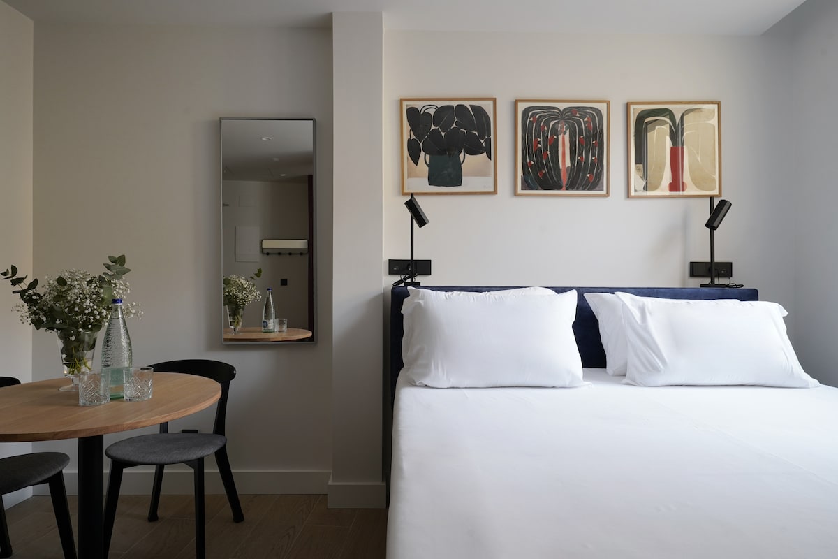 Eric Vökel Madrid Suites 이 70m ² 아파트에는 더블 침실 2개와 욕실 2개 (스위트룸 1개) 가 있습니다. 개방형 거실/식사 공간에는 시설이 완비된 주방이 있습니다. 1층과 아래층에 위치한 복층형 아파트 또는 복층 아파트로 이용하실 수 있습니다. 최대인원 6명 (2인용 소파베드) 7박이상 숙박의 경우, 주간 하우스키핑이 포함됩니다. 추가 청소 서비스를 추가 비용으로 예약할 수 있습니다. 침구와 수건 포함.
