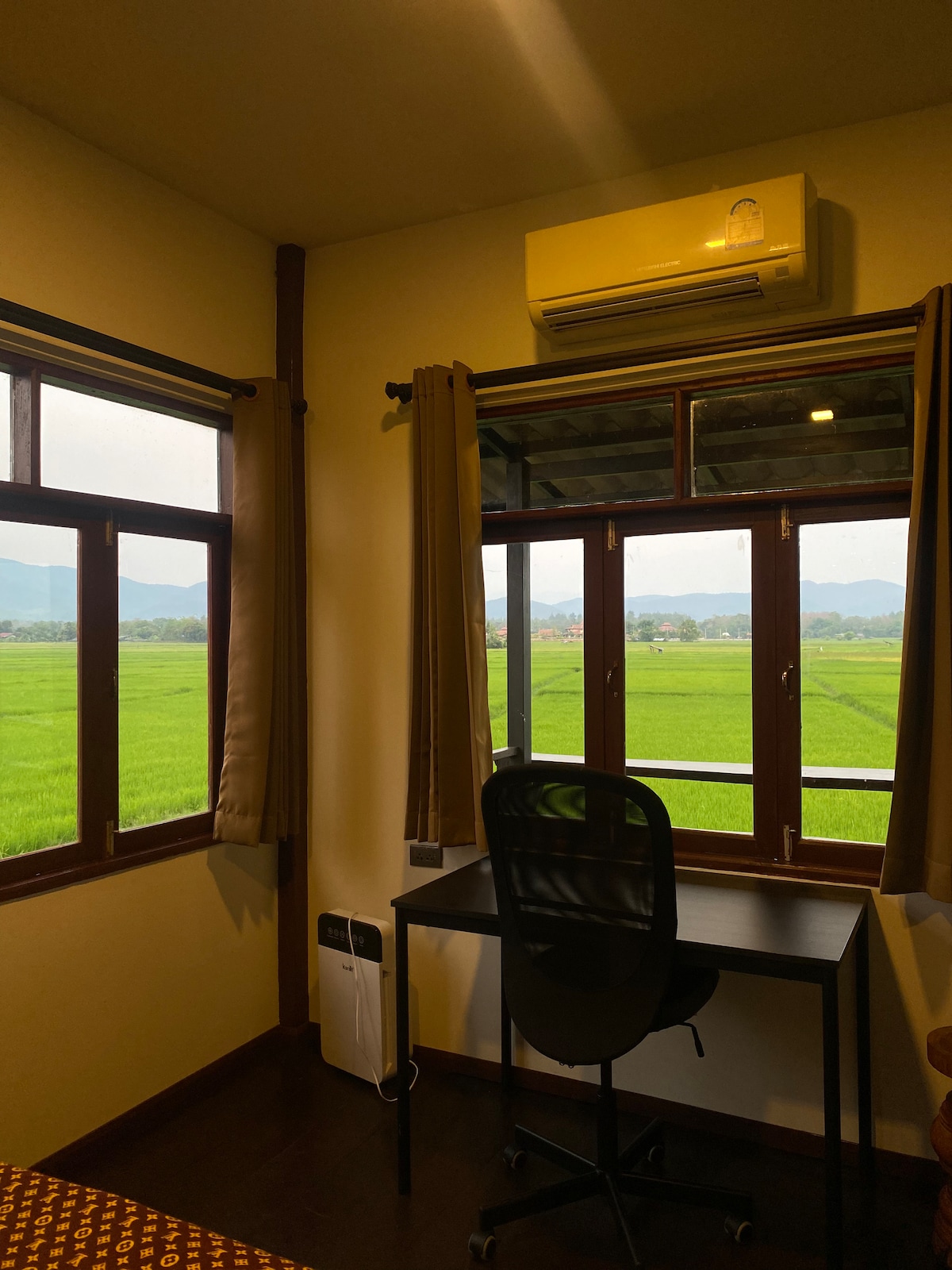 *3명 예약시에는 2명으로 먼저 예약하시고 메세지 주세요! 감사합니다. *두 분이나 세 분이 오셔서 방 두 개를 사용하시길 원하실 경우, 요금은 4인 기준으로 적용된다는 점 양해 부탁드립니다. 감사합니다! 안온한 쉼과 평온함을 주는 논 앞의 집, 평화로운 치앙마이 자연을 배경으로, 건축가의 할머니인 ‘누안’ 할머니의 품처럼 따뜻하고 다정한 집이랍니다. 천천히, 푸른 물결로 일렁이는 벼들과, 열대의 짙은 하늘과 바람을 느껴보시길 바랍니다. 자전거를 타고 시골 마을을 돌아다니고, 가까운 로컬 시장에서 이국적인 음식들을 맛볼 수 있습니다. 길가에 핀 이름 모를 열대꽃들을 저와 그림으로 그려볼 수도 있습니다. 저녁에는 음악을 들으며 주홍빛 노을을 바라보고, 밤에는 모닥불에 둘러앉아 이야기를 나누고, 풍등을 올리며 함께 소원을 빌어볼 수도 있답니다. 저희가 사는 아름다운 치앙마이의 들판에서 여러분을 기다리겠습니다.