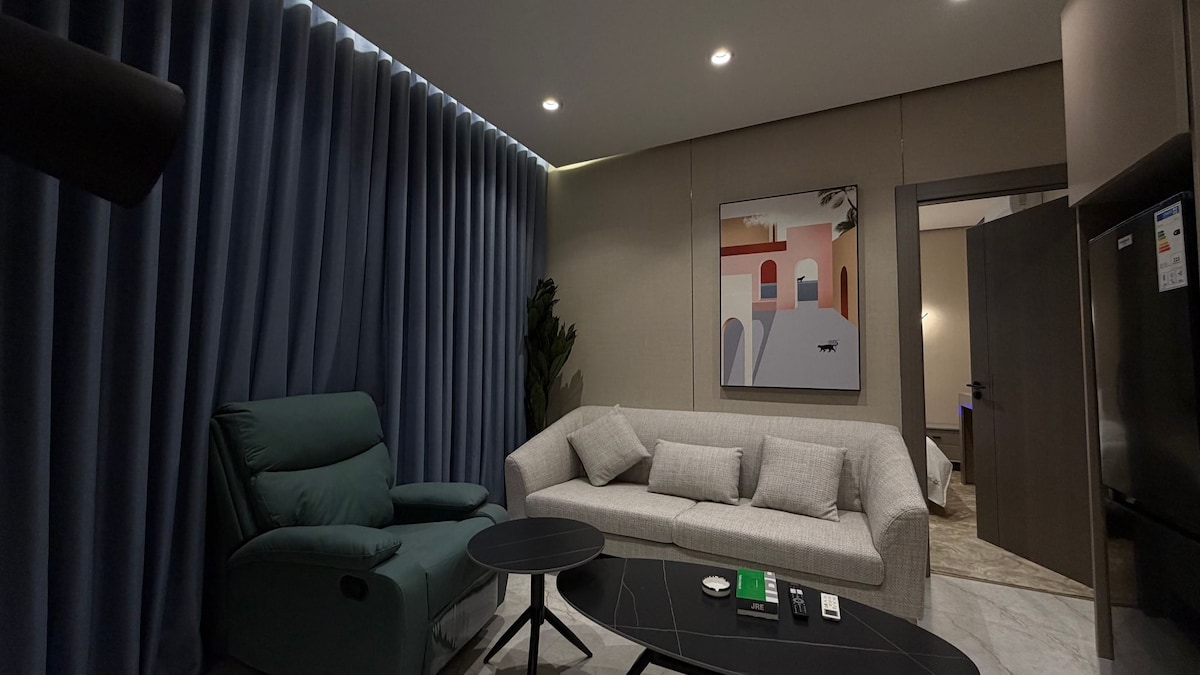 Welcome to your comfortable retreat in the heart of Amman, Jordan. This charming 1-bedroom apartment offers a perfect blend of modern convenience and cozy living. The spacious bedroom features a king-sized bed, ensuring a restful night's sleep. The kitchenette is well-equipped with an electric kettle, freezer, fridge, and microwave, allowing you to prepare light meals with ease. The full bathroom includes a separate shower and toilet, providing a convenient and private space for your daily routine. The living room and TV room are designed for relaxation, featuring satellite/cable TV and a telephone for your entertainment and communication needs. Accessibility is a priority, with full wheelchair access throughout the property. Stay warm with electric heating and enjoy the convenience of a washing machine, hot water, and free towels. The apartment also offers free parking, wireless internet, and a stunning city view from your private balcony. For your safety, we provide hand sanitizer and ensure all bedding and towels are washed at high temperatures. Additional amenities include slippers, gym/fitness equipment, and car rental services to explore the city. Located in a vibrant neighborhood, you'll be close to popular attractions such as the Citadel, Rainbow Street, and the Roman Theatre. Experience the best of Amman from this welcoming and well-appointed apartment.