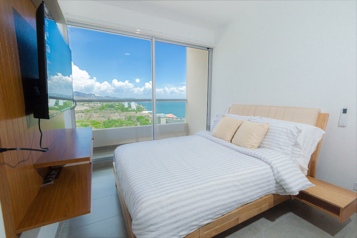 산타마르타 한가운데에 위치한 현대적이고 시설이 완비된 1베드룸 아파트로 아름다운 해변 일몰과 수영장, 사우나, 헬스장 등 다양한 편의시설을 갖추고 있어 편안하고 편안한 휴가를 보내실 수 있습니다. 산타마르타의 인터내셔널 마리나와 아름다운 보드워크까지 도보 거리에 있으며, 아메리카 대륙에서 가장 오래된 역사적 중심지로 이어지며 많은 레스토랑과 활기찬 나이트 라이프를 즐길 수 있습니다.