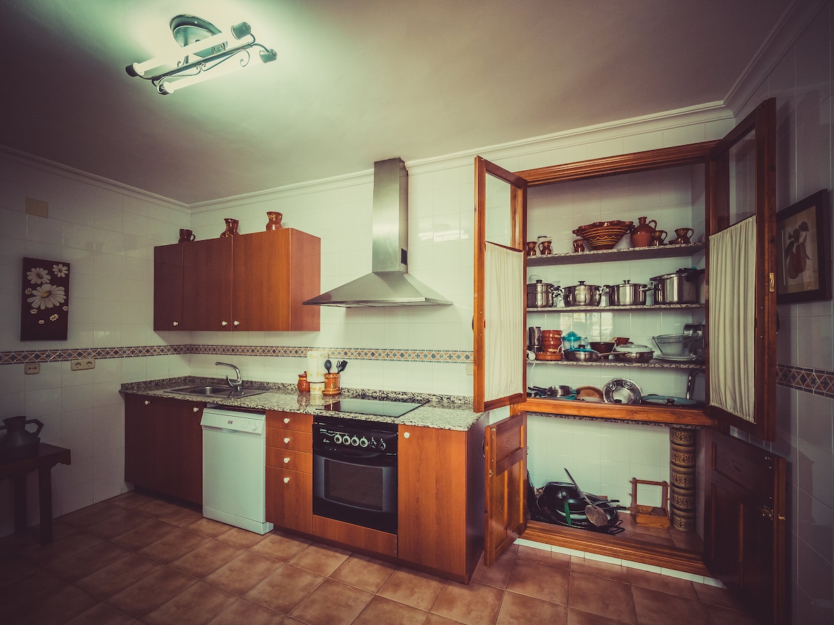 알카라 델 후카르의 탁 트인 전망을 자랑하는 언덕에 위치한 매력적인 시골집. 자연을 단절하고 즐기기에 안성맞춤입니다. 6 ~ 8인 수용 인원. 숙소는 다락방이 있는 복층으로 나뉘어 있으며 다음 객실로 구성되어 있습니다. 침실 4개 욕실 3개 주방 1개 식사 공간 1개 거실 1개 테라스 1개 액세서리: 바비큐, 숯, 장작, 벽난로. 궁금한 점이 있으시면 편하게 문의해 주세요 :)