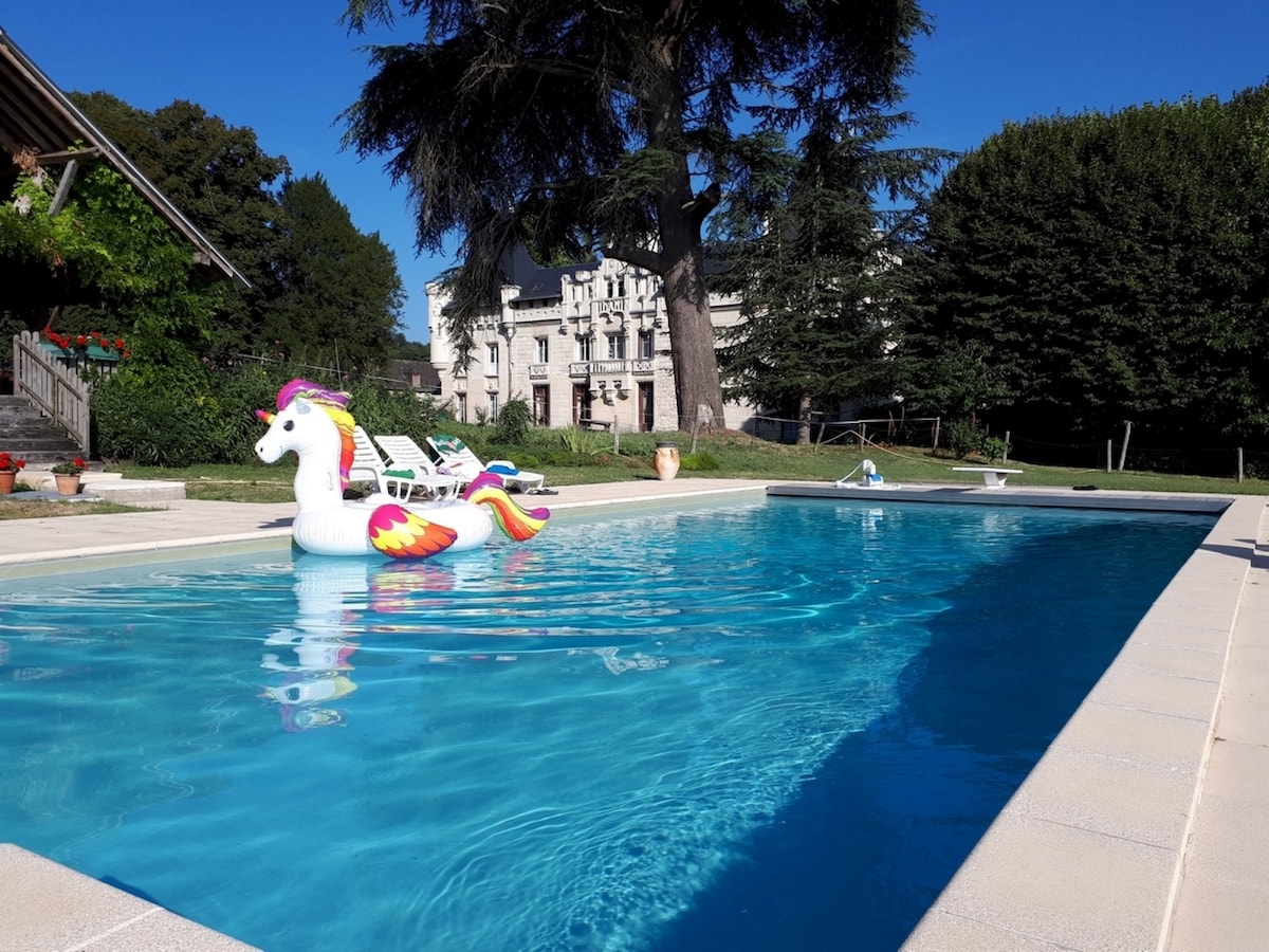 Vivez la vie de château! Au coeur de la Vallée de la Loire, découvrez notre gîte "Contades" entièrement équipé avec entrée indépendante. Situé dans le corps principal du château il comprend 2 vastes chambres, un magnifique salon et une piscine ext. Réservation à la semaine en juillet et en août, 3 nuits minimum le reste de l'année.