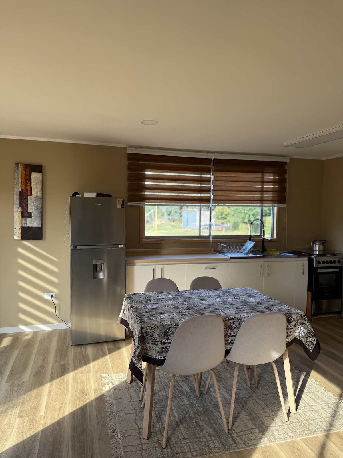 쉼레라 데 탱고에 위치한 이 독특하고 편안한 숙소에서 루틴에서 벗어나 휴식을 취하세요. 산티아고에서 30분 거리에 있으며 접근성이 매우 좋습니다. 자연에 둘러싸여 있는 조용하고 안전한 자연 환경을 즐길 수 있도록 설계되었습니다. 넷플릭스 및 기타 플랫폼이 있는 TV, 와이파이, 원두 커피 메이커, 전기 히터, 장작 난로, 냉장고, 미니 쿡탑, 전자레인지, 기본 조리 도구, 주차장.