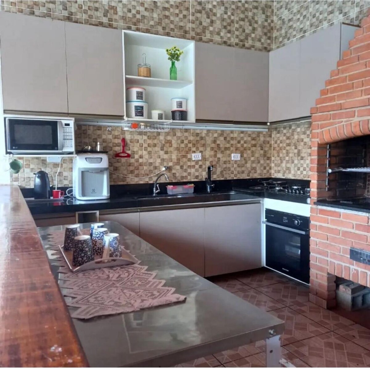 Relaxe com toda a famรญlia nesta acomodaรงรฃo tranquila. Casa com 3 quartos uma suรญte mais dois banheiros Sala Cozinha Americana internet wifi รrea Coberta Churrasqueira com mesa de sinuca campo recreativo futebol Gramado รกrea grande com 3 mil metros Piscina Grande Ideal para quem gosta de Chรกcara com muita natureza, nรฃo temos serviรงos tipo de hotel o espaรงo e exclusivo para famรญlia e amigos .