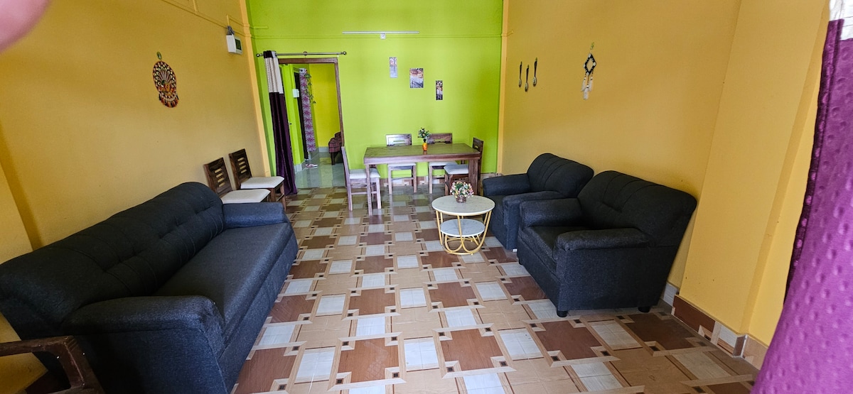 A full apartment with all the necessary amenities and parking. 1.5km/1 mile away from main town. Easy communication throughout day. 1 Queen Bed, 1 Double Bed, Kitchen and Living room. Unmarried couple friendly with valid govt ID. Services with Extra Charges: 1) Car Pickup and Drop. 2) Access to Yoga Session at Earth Yoga Studio. 3) Bonfire. 4) Above 2 person there are extra charges. 5) If your pet makes the space dirty there is an extra ₹400 cleaning charges. You’ll feel right at HOME.