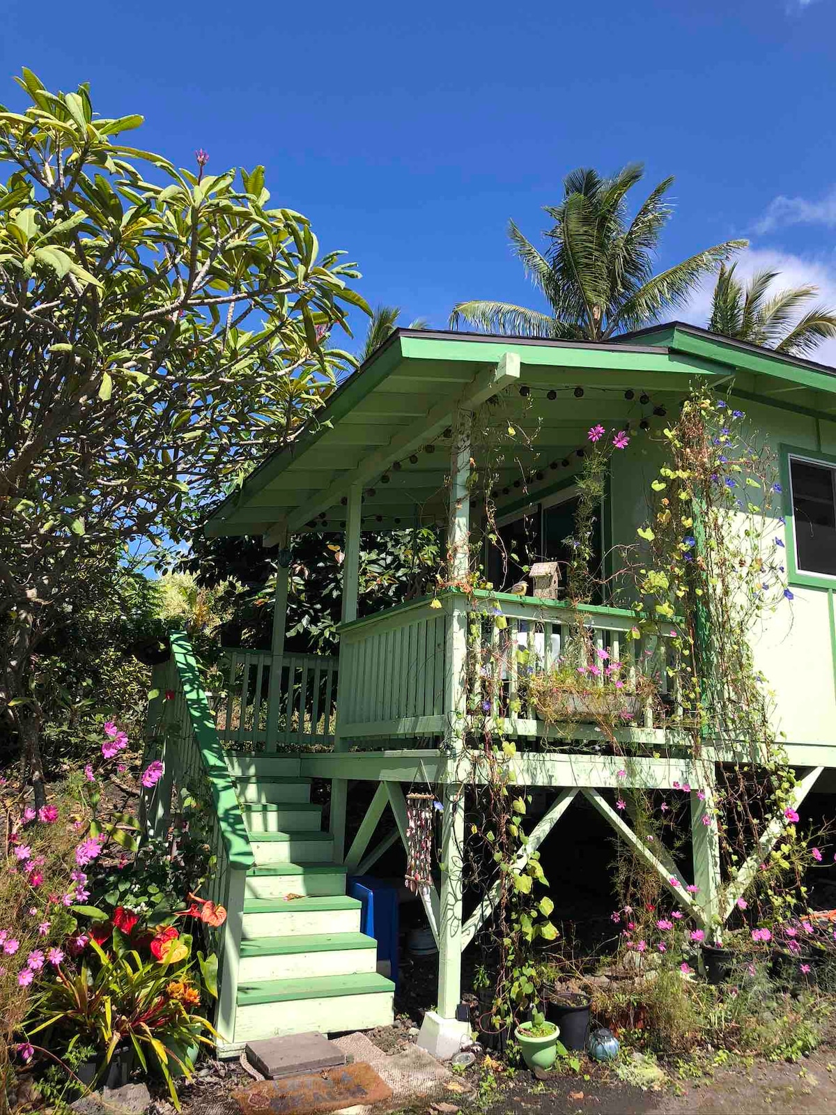 해발 2500피트의 독특한 클라우드 포레스트에 머물러보세요. 공항, 해변, 레스토랑, 바, 상점까지 몇 분 거리에 있습니다. 신혼여행, 작가 휴양지 또는 명상 휴가에 안성맞춤인 특별한 숙소입니다. 토착 숲으로 둘러싸여 있으며, 나무 고사리와 하와이 노래 새가 있습니다. 오후의 비는 웅장한 석양으로 끝납니다. 밤에는 창문을 열고 잠을 잘 수 있을 정도로 시원합니다. 주립 숲 하이킹 트레일이 숙소 바로 앞에 있습니다. 아침에 방문하는 현지 앵무새 떼를 포함한 멋진 조류 관찰!