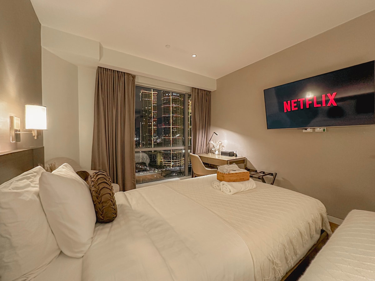 Modern twin suite near Makati & Rockwell with city views, fast WiFi, and pool access. Ideal for staycation, business, and remote work. Stay at a modern twin hotel suite near Makati, Rockwell, and Ortigas. Located at Novotel Suites Manila at Acqua, this high-floor unit offers city and river views, fast WiFi, and easy access to top business districts, malls, and restaurants. Perfect for staycations, business trips, and remote work.