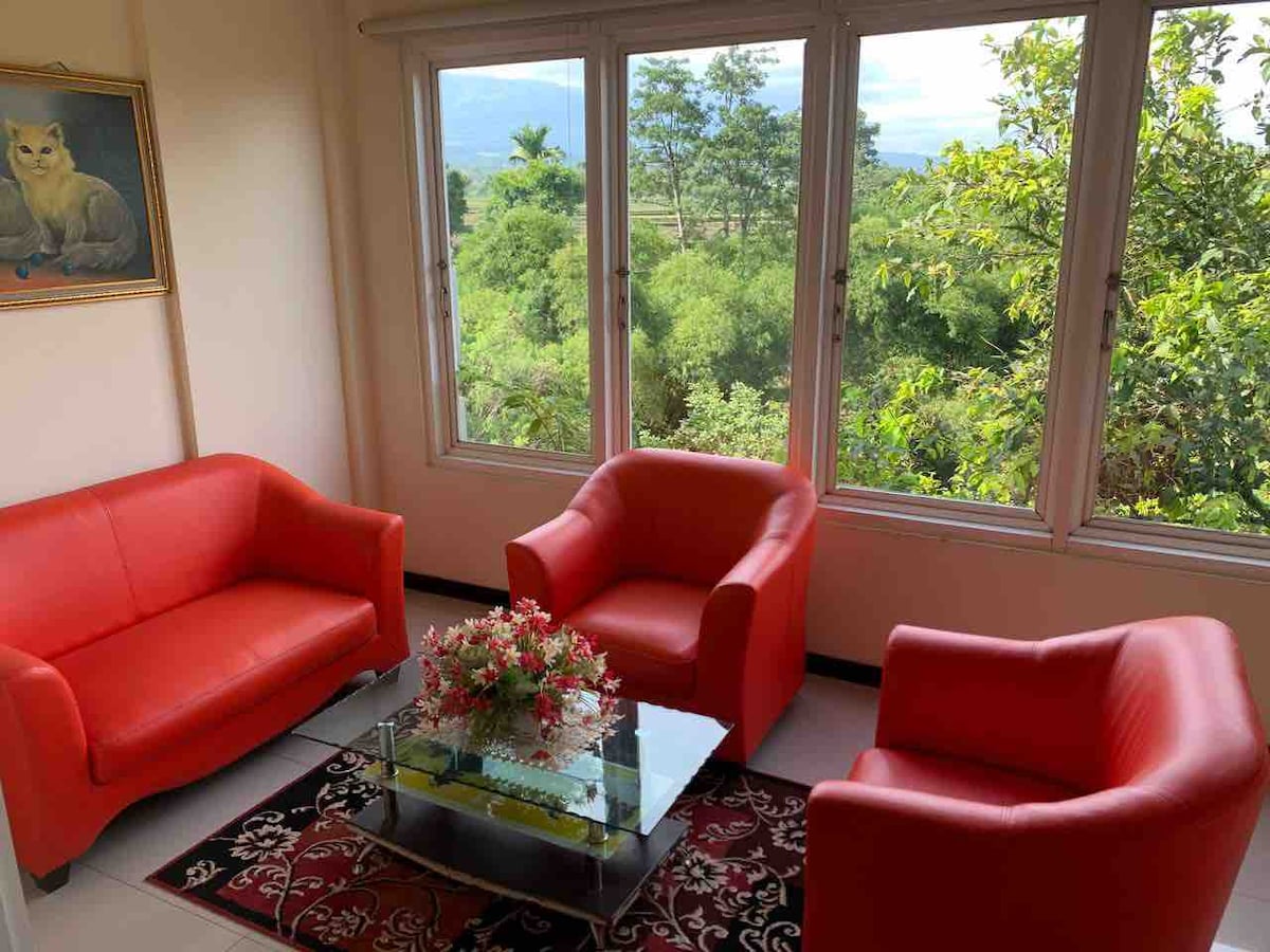 This room is 1 double 1 single bed good for 3 person , house located in the middle of golf course, quite and peaceful surrounded with nice restaurants