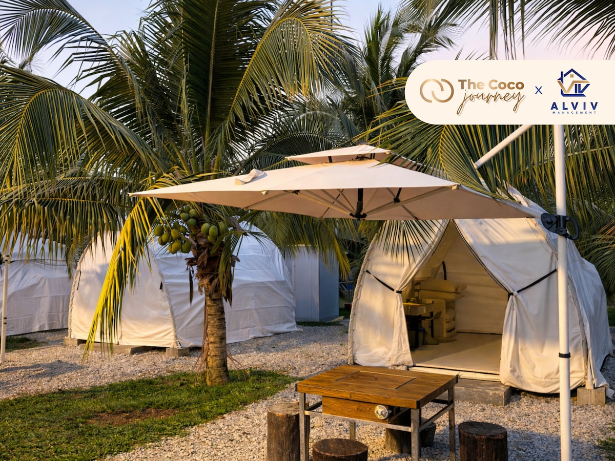 Enjoy the lovely setEscape to a romantic seaside glamping tent surrounded by nature. Enjoy the ocean breeze, cozy air-conditioned comfort, and peaceful nights under the stars — perfect for couples or families seeking a unique tropical getaway.ting of this romantic spot in nature.