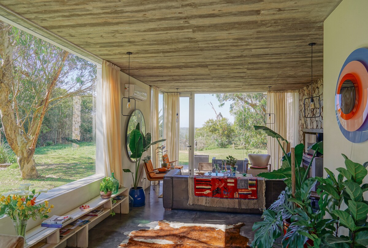 자연으로 둘러싸인 이 오아시스에서 일상을 벗어나세요. 평화와 평온을 찾고 계신다면 이곳이 최선의 선택이라고 장담합니다. 핑크 플라밍고 라군 위 바다 전망을 즐길 수 있는 숲속의 멋진 집. 아래층: 나무 난로, 화장실, 주방, 세탁기가 있는 넓은 거실, 위층에는 킹사이즈 침대가 있는 침실 2개가 있으며, 각 침실에는 전용 발코니가 있습니다. 그릴이 있는 넓은 정원. 호세 이그나시오에서 5분 거리에 있습니다. 조명은 별도로 요금이 부과됩니다.