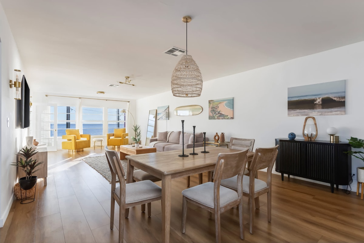 Complete remodel Jan 2026. As seen on LA-RE Influencers. Voted BEST Condo in Malibu 2025. Private stairwell 2ft from front door to my private beach. Direct Ocean front 1 bed 1 bath condo with front and side ocean views from every room. Subzero fridge, Wolf Dual Fuel Range, Bosch Dishwasher, heated bath floor, rain shower with mood lighting. 86” led tv in living room. Pull out couch in living room to accommodate kids or guests. Small dogs might allowed with Pet fee but MUST be approved by owner.