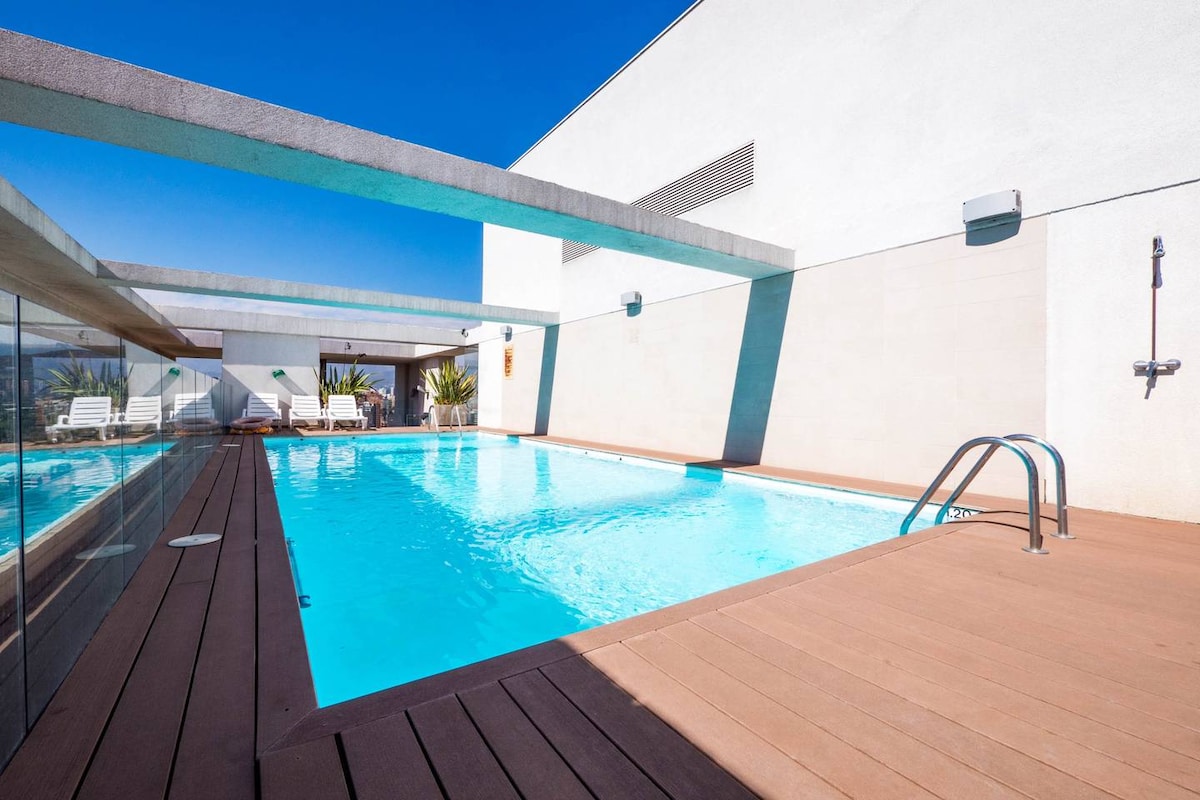 Depto. moderno con piscina, cerca del Mall