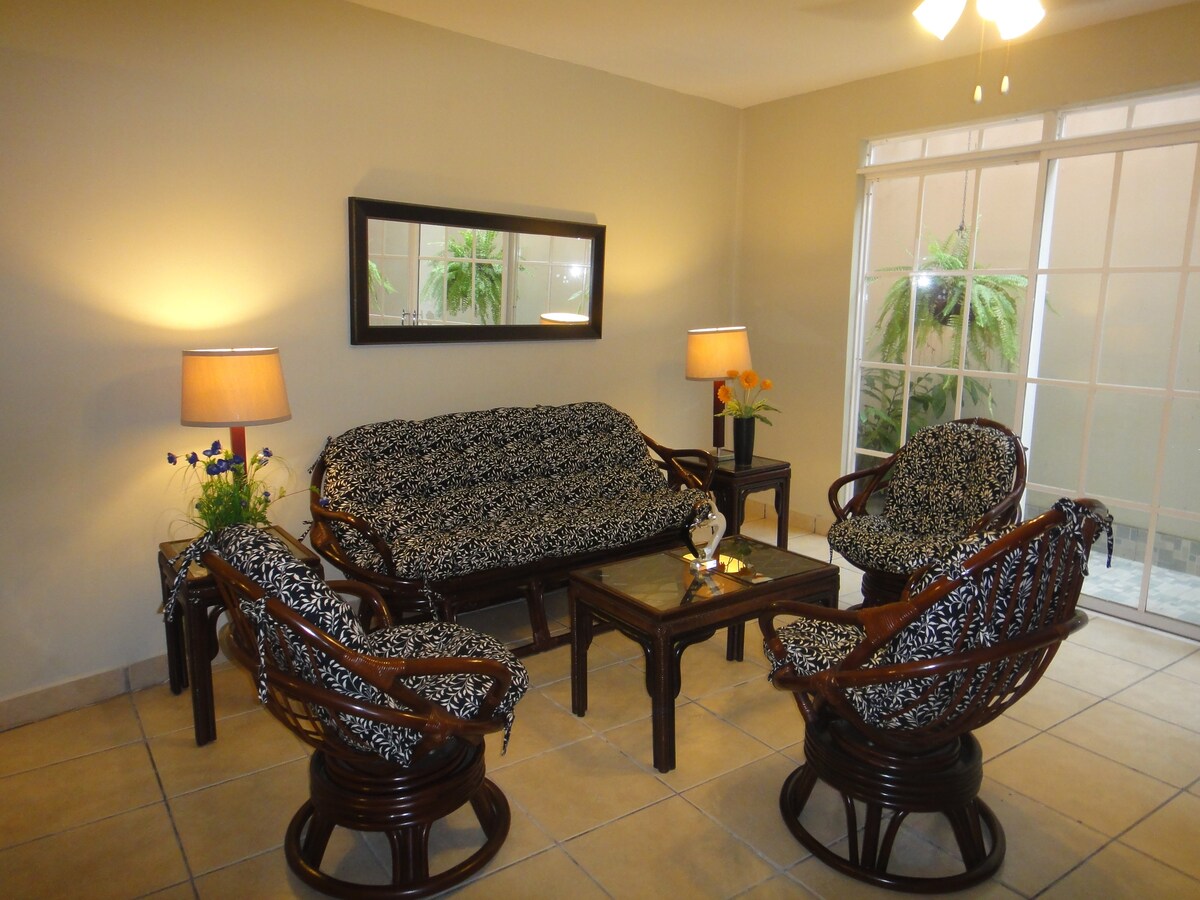 Apartamento de una recamara con camas Queen y un sofá cama adicional moderno y versátil. Equipado con cocina básica, muy conveniente para estadías prolongadas. Excelente microclima en zona céntrica de la ciudad de Managua. Con servicios de agua caliente, a/c y wifi de alta velocidad. Con ofertas económicas de servicios adicionales de pago como restaurante y taxi dentro de las instalaciones. Un servicio de limpieza incluido por 3 noches de estadías o dos limpiezas por semana.
