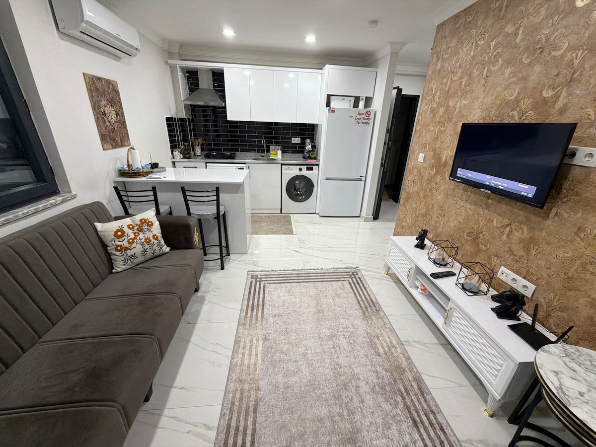 Das Apartment verfügt über 2 Zimmer: 1 Schlafzimmer und 1 Wohnzimmer mit offener Küche. Bis zu 4 Personen können sich in unserem Apartment rundum wohlfühlen. Balkon mit direktem Zugang zum Poolbereich. (Pool Mai - Oktober) Wohnanlage mit Code gesichert und 24h Videoüberwacht Öffentlicher Strand in ca. 10 Minuten zu Fuß erreichbar Supermärkte, Dolmuş, Restaurants und Bars in direkter Umgebung 1x pro Aufenthalt und Person Bettwäsche und Handtücher sind inklusive.