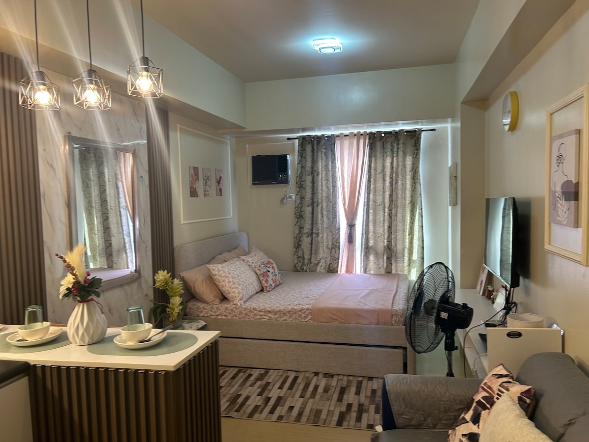 이 미니멀하고 편안한 숙소는 일로일로 시내 중심가에 위치하고 있으며 쇼핑몰과 필수 관광지(카사 엠페라도르, 몰로 교회 및 광장)에서 가깝습니다. 이 객실에는 퀸사이즈 침대가 있으며, 55인치 소니 TV, 초고속 인터넷 속도의 무료 와이파이, 냉장고, 에어컨, 전기 주전자, 여성용 및 후면 세척 기능이 있는 비데, 온수기(온수 샤워), 밥솥, 인덕션 스토브, 조리 도구 등 '호텔 같은' 편의시설을 제공합니다. 수영장(2인)과 헬스장도 이용하실 수 있습니다.