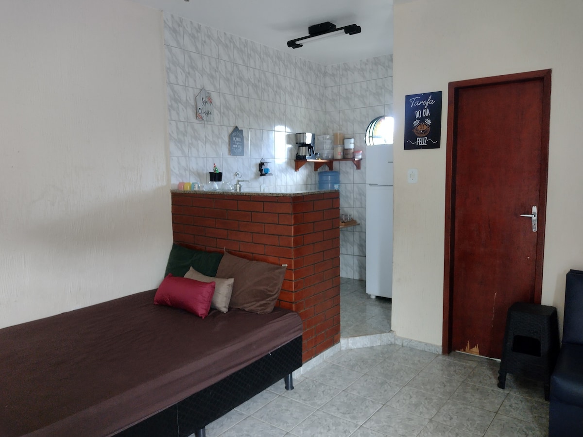 Relaxe com toda a família nesta acomodação tranquila. A kitnet fica alguns minutos da praia de conceição/ praia de garatucaia e cachoeiras locais. A kitnet possui: Quarto ( 1 cama solteirão 1 cama solteiro) Sala ( sofá-cama / televisão) Cozinha (com itens de cozinha) Banheiro Varanda ampla (rede /chuveirão)