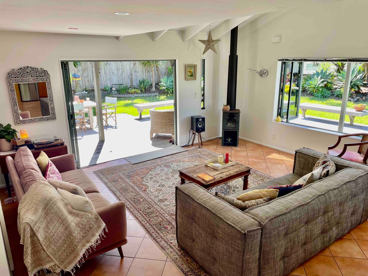 Whare Iti is a boutique retreat in Mangawhai Heads, ideal for sun-filled summer stays and cosy winter escapes. With two super-king bedrooms, living area with fireplace and screen with Chromecast, freestanding bath, BBQ and sun-soaked terraces, it’s the perfect place to unwind. Enjoy a fully equipped kitchen, lush fenced garden, and easy access to beaches, cafés, markets, golf course, estuary walks — all just a short stroll away.