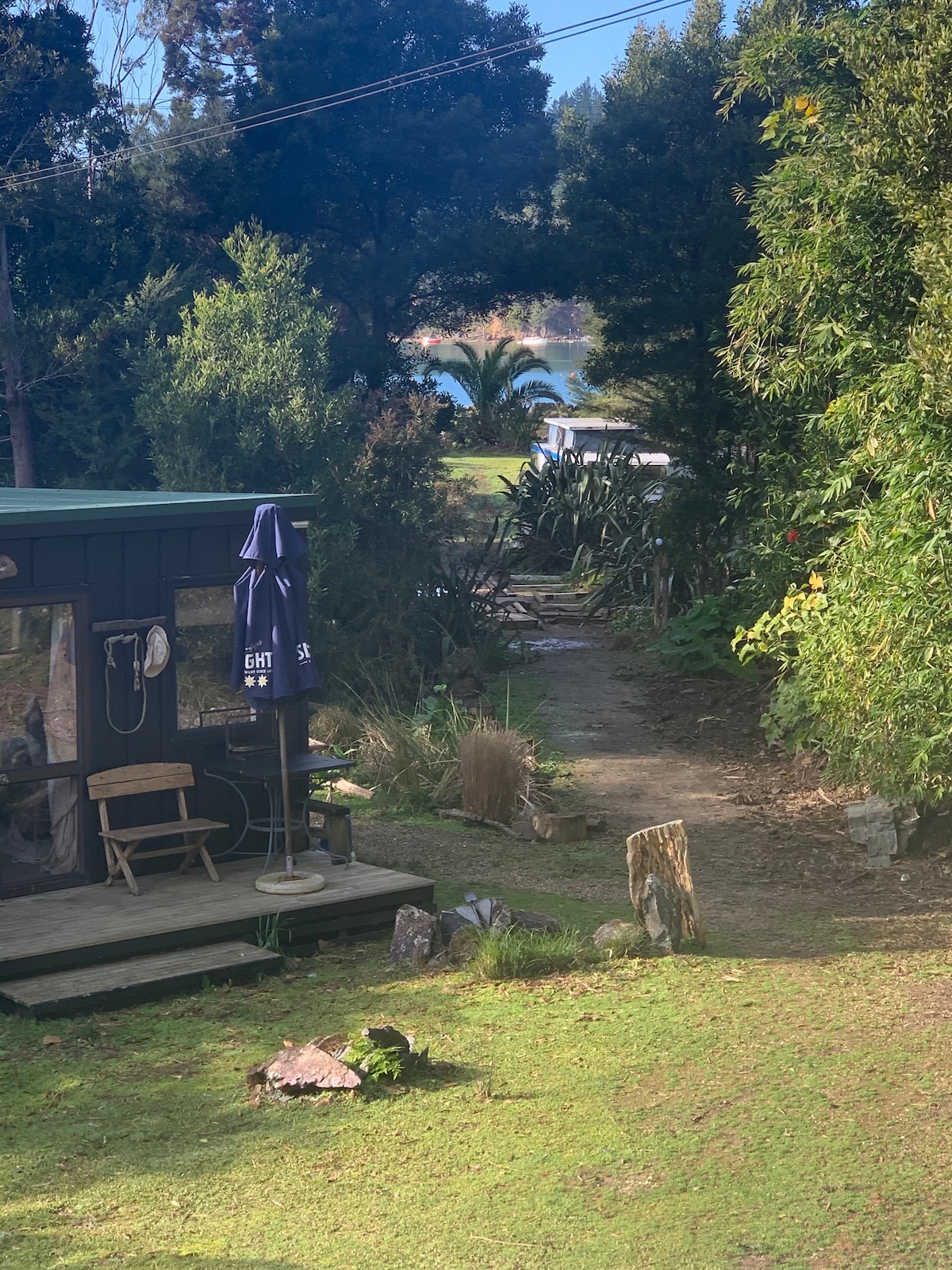 No hidden charges. Self catering apartment with water, bush and garden views. King bed with quality linen, ensuite -great water pressure. Dine at breakfast bar overlooking garden and harbour, or alfresco on the deck. Kitchenette has microwave and mini oven, hot plate and air fryer. 2 outdoor seating options plus hammock. Wake up to birdsong and enjoy this comfortable piece of paradise. Spa pool treated with minerals not chemicals, heated to suit the season. SUPs, Kayaks, Bikes available.