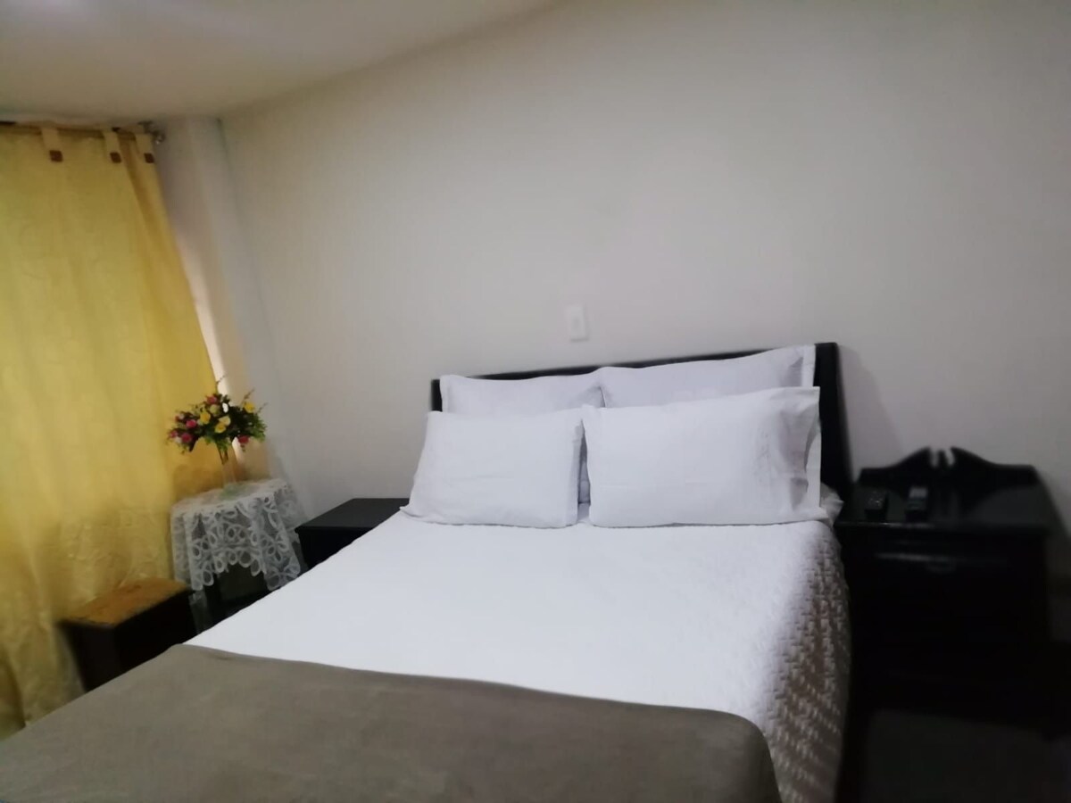 Apartaestudio en 1 piso. Perfecto para dos personas , ideal para quienes buscan cercanía y fácil acceso a la zona del centro y de Chipre. El espacio que disfrutarán: 1 Habitación con cama doble, clóset, Sala, baño,cocina y barra americana, solo para uso exclusivo del huésped. Cuenta con agua caliente,Wi-fi veloz y garaje hasta para dos motos. Estamos ubicados cerca del parque de las aguas, la plaza de toros, restaurantes y locales comerciales del centro de la ciudad.