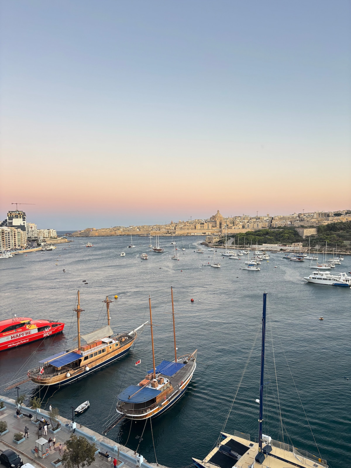 A unique top floor apartment with a large terrace and a breathtaking view over Sliema, Manoel Island and St Carmel Basilica. Located in the heart of the city of Valletta, next to the lively Strait Street's area with its bars and restaurants. Bright and spacious. Double exposure. You will enjoy spectacular sunsets. Two bedrooms, two bathrooms. Kitchen fully equipped. Fully air conditioning, wifi, iptv. A walking distance from the Sliema ferry and bus station. Outstanding! No children under 10.