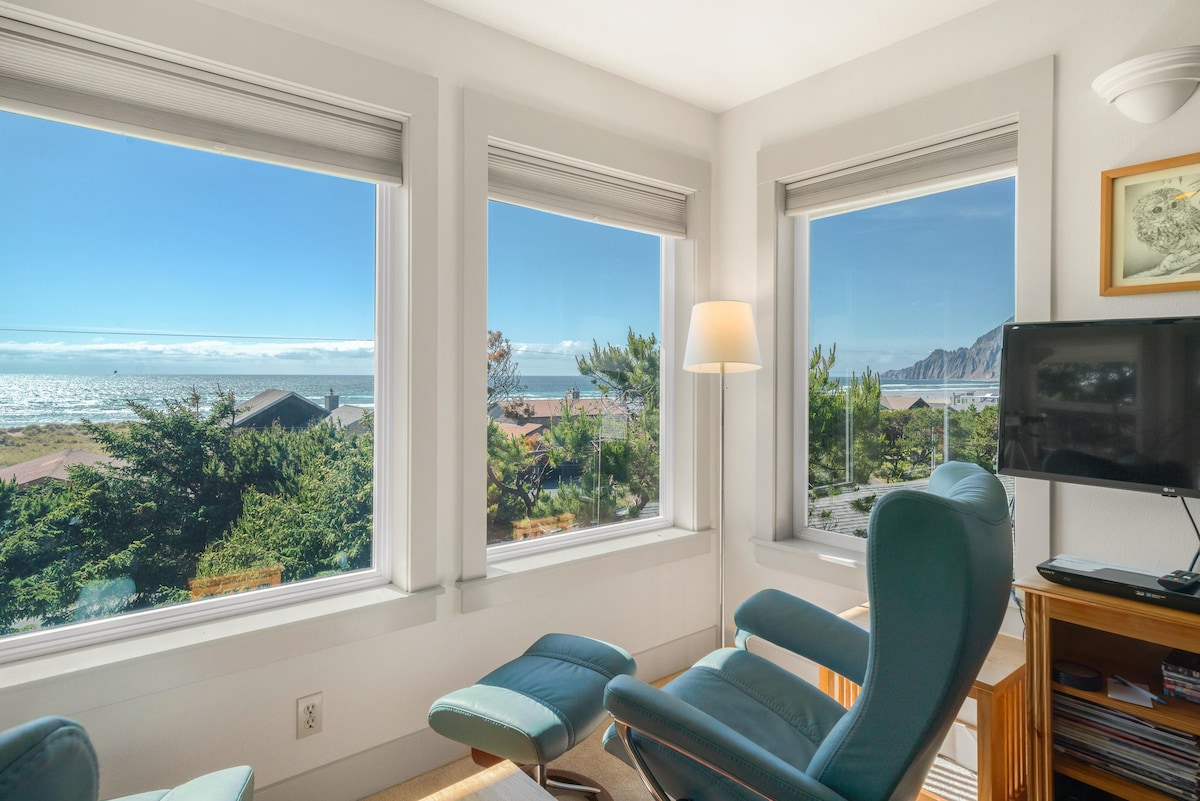 벽난로 앞에서 아늑한 시간을 보내면서 탁 트인 태평양 전망을 감상하세요! 겨울 폭풍을 감상하기에 이상적인 장소입니다. 이 미드 센추리 A 프레임은 오션사이드 빌리지와 해변에서 불과 2블록 떨어진 언덕에 자리 잡고 있습니다. 오리건의 전형적인 휴양지....모든 편안함을 갖춘 준-소박한 곳. # 851-10-1848-STVR