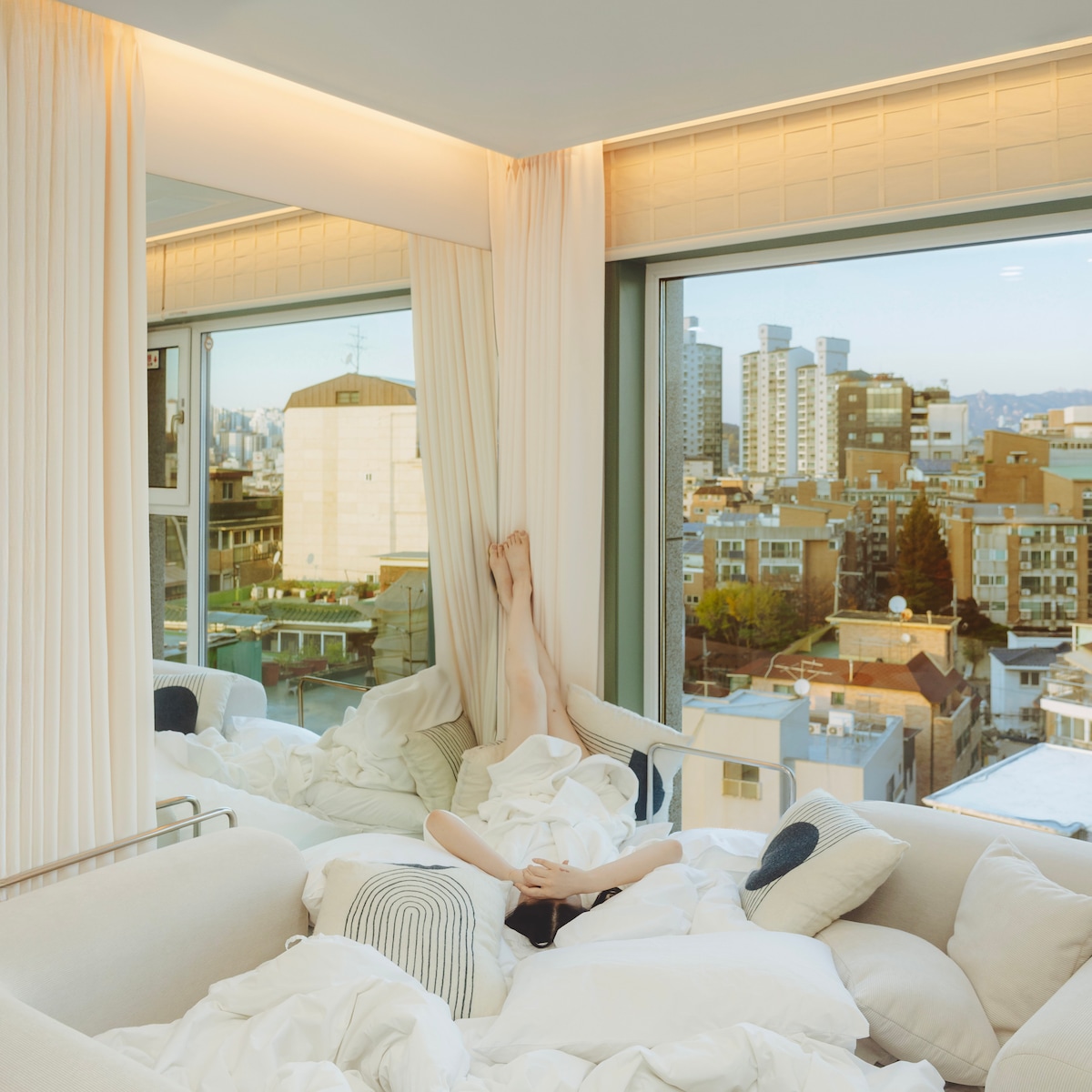 홍대입구역 도보 5분, 8층 고층 시티뷰가 펼쳐지는 동양 감성의 신축 호텔 스타일 2룸입니다. 따뜻한 나무톤과 미니멀한 조명으로 완성된 ‘한국적 여백미’의 공간에서, 커플·가족·친구 모두 편안히 머무실 수 있습니다. 2025년 리모델링 건물로 보안이 철저하며 엘리베이터, 무료 캐리어 보관, 셀프 체크인을 제공합니다. Just a 5-minute walk from Hongdae Station, this 8F apartment blends Korean-inspired warmth with a modern hotel design. Enjoy serene city views, soft lighting, and a minimalist atmosphere that embodies calm and comfort. We provide elevator access, self check-in, and free luggage storage.