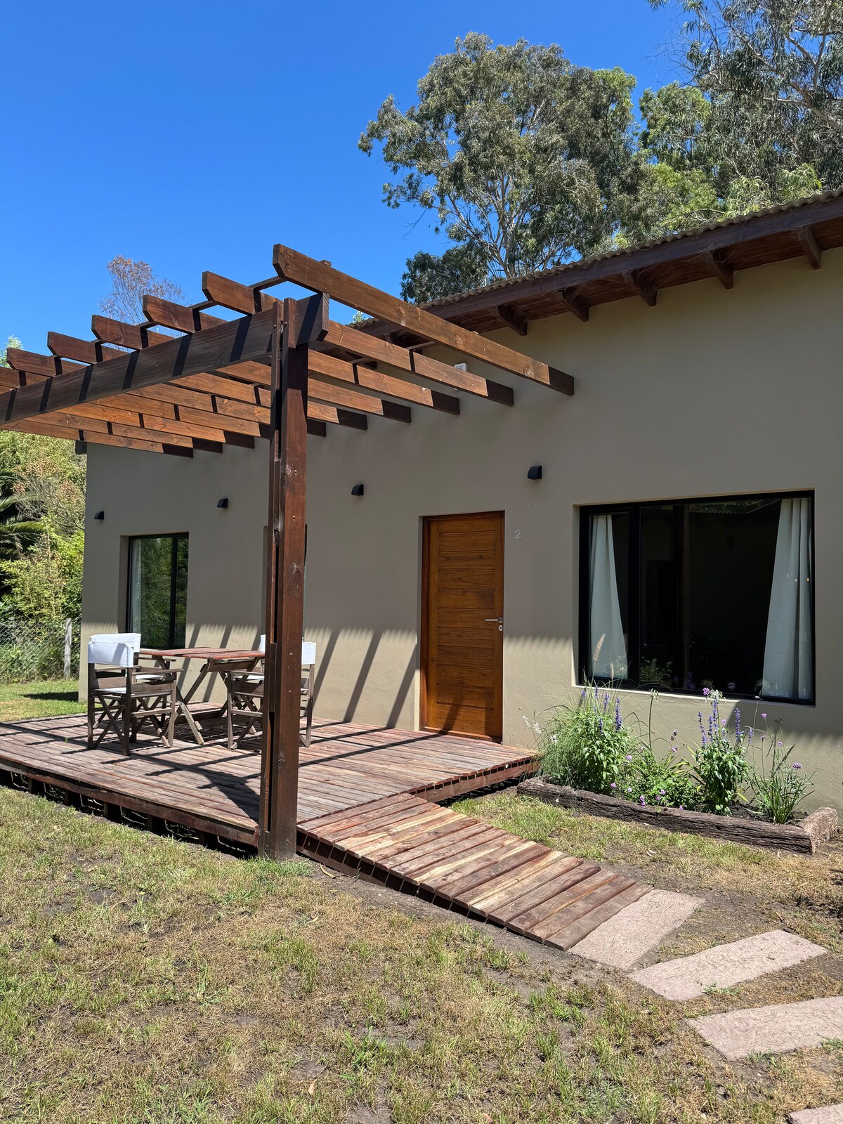 Cabaña moderna establecida en el 2023 en zona privilegiada del bosque peralta ramos (a 10 cuadras de las playas del sur por acceso directo a diag. eeuu) . Entrada privada y trotadora para autos, gran jardín parquizado, deck con pérgola, área de parrila, cuarto independiente y living comedor integrado con sofa-cama. Wi-fi, alarma, camara de segurida, TV con apps, etc. Terreno plenamente soleado rodeado de naturaleza.