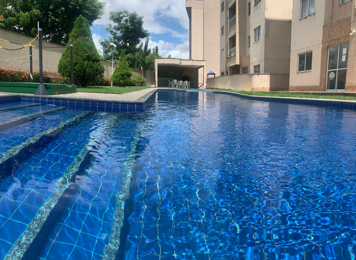 완벽하고 현대적이며 아늑한 아파트! 24시간 컨시어지와 차고가 있는 외부인 출입 제한 단지에 있습니다!높은 층! 안전! 키오스크 금연 및 반려동물 동반🚫 불가 엘리베이터 아크 컨디셔닝 전기 샤워부스 더블 침실 2개 다리미 패스 에어프라이 네트워크 헤어드라이어 주방 2SmartTV 와이파이 디지털 잠금장치 세탁기 레저 지역 수영장 📍주요 명소와 가까움 이구아테미 - 8KM 비아술 - 5KM 이벤트 센터 - 7KM 공항 - 7KM 프라이아두푸투루 - 14km 베이라마르 -12km 카스텔랑 -1KM