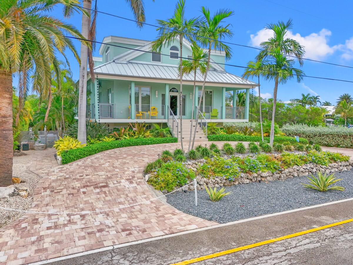 현대적인 열대 낙원 | 플로리다주 마라톤 플라밍고 아일레의 세련된 숙소로 솜브레로 해변, 마리나, 낚시 부두, 실내 서핑 스타일의 상점, 플로리다 키스 컨트리 클럽에서 몇 분 거리에 있습니다. 침대 3개 | 욕실 2개 + 서재 장애인용 샤워 시설이 있는 아래층 욕실 거실 + 놀이방(당구대, 게임) 야외: 온수 수영장, 자쿠지, 바비큐, 티키 오두막 보트 트레일러 및 RV 주차장이 있는 코너 주차장(전체 연결)