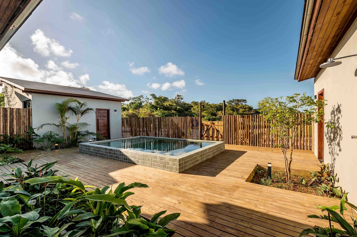 느리게 걸으며 이 조용하고 세련된 공간을 즐기십시오. 욕실에 딸린 정원에 매료되십시오. 여기서 샤워를 할 때도 편안함, 평화, 자연과의 접촉을 즐길 수 있습니다! 아구아 마리나 하우스는 잊을 수 없는 순간을 선사하기 위해 세심하게 고안되었습니다. 이곳에서 당신은 맛있는 킹사이즈 침대 또는 전용 정원의 해먹에서 휴식을 취할 수 있습니다. 간이 주방, 에어컨, 40인치 스마트 TV, 암막 커튼이 갖춰져 있습니다. 침구, 목욕 수건, 수영장 수건을 제공합니다.