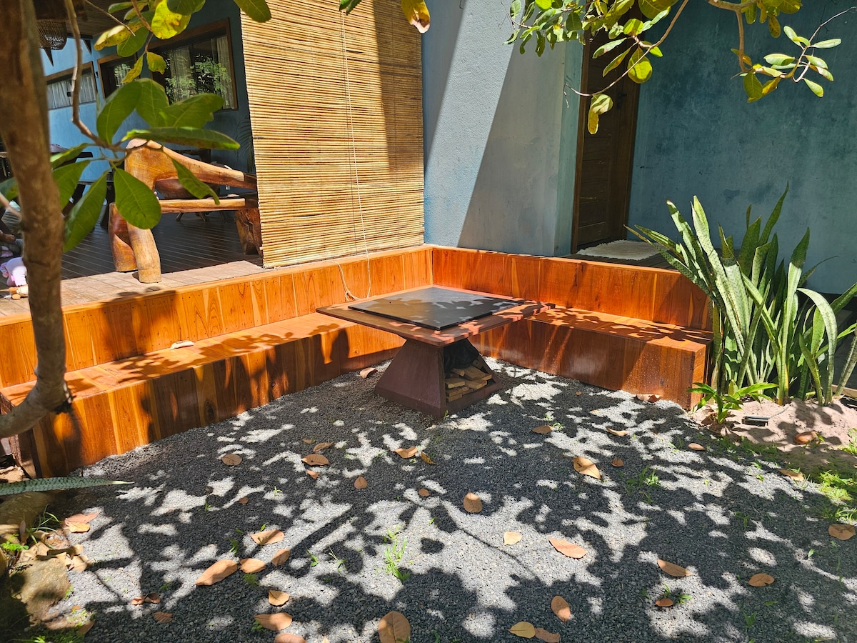 É um espaço calmo e cheio de estilo à 200 metros da praia, em meio a vegetação nativa! Somos LGBTQIAP+ friendly e por estarmos afastados do núcleo da comunidade desfrutamos de silêncio, tranquilidade e privacidade mas a cinco minutos do agito! A suíte conta com rede para o seu descanso, cama queen, cozinha preparada com todo o necessário para o preparo das suas refeições . A sala de banho conta com espaços reservados que garante a sua intimidade. Relaxe neste espaço!