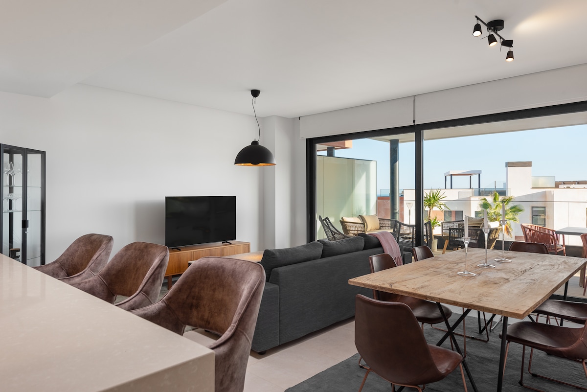 새 건물. 모든 것이 새것입니다. 디자인 펜트하우스. 고급스럽고 조용한 위치. 해변과 골프장 근처. 142㎡ 인테리어. 149㎡ 외관. 바다 전망과 작은 전용 수영장을 갖춘 멋진 옥상 테라스. 넓고 아름다운 주거용 수영장. 두 번째 아늑한 테라스. 침실 2개와 게스트 침실 1개. 욕실 2개. 생각할 수 있는 모든 편의시설이 있습니다. 완벽하게 깨끗합니다. 완벽하게 관리됩니다. 최대 성인 4명과 어린이 2명에게 이상적입니다. 별 5개 후기만 받습니다. 저희 게스트분들이 좋아하십니다 장기 숙박을 고려해 보세요