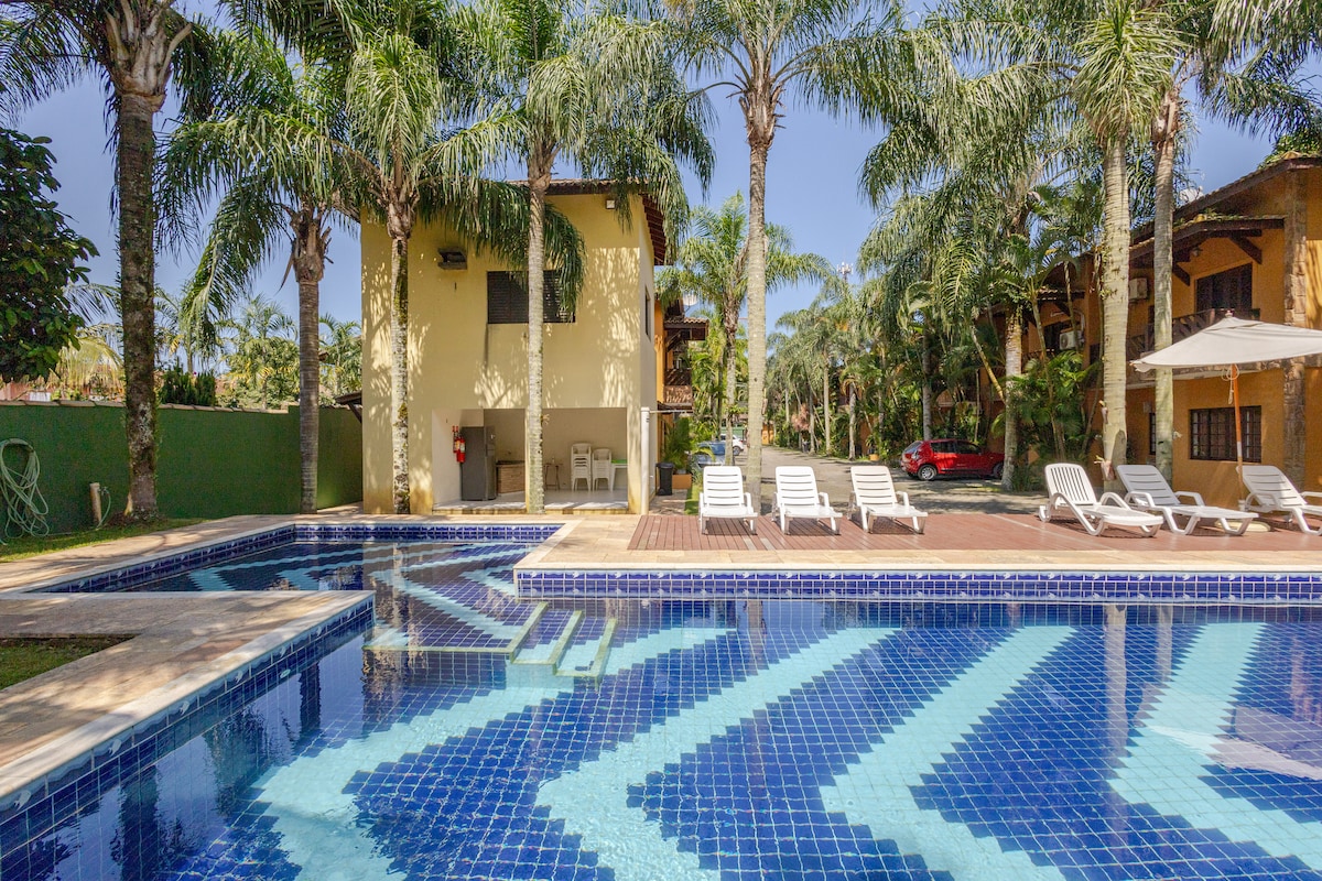 Beautiful house in a gated community in Maresias 6 minutes from the beach Private barbecue Shared pool Bed linens provided (we do NOT provide blankets) 24-hour security 400 MB Wi-Fi 2 bedrooms with double beds, split A/C and fans Living room with sofa bed and 2 single mattresses 42" Smart TV Fully equipped kitchen 2 parking spaces Rate for 4 guests; accommodates up to 6 with an extra fee starting from the 5th guest Check seasonal promotions