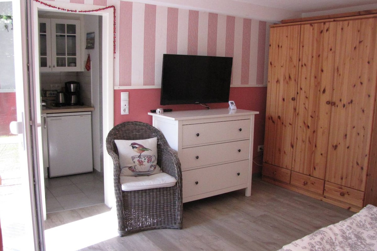 와인 생산지 테일하임에 오신 것을 환영합니다. 자연에 더 가까울 수는 없습니다. 근처의 바로크 도시인 뷔르츠부르크는 아름다운 자전거 도로(약 10km)를 통해 갈 수 있습니다. 약 32 평방 미터의 원룸 아파트는 2024 년에 새롭게 리모델링되었습니다 (최대 2 명). 광범위한 시설로는 오븐, 식기 세척기, 43인치 QLED TV, 디지털 라디오, 헤어 드라이어 등이 있습니다. 숙박 기간 동안 침구와 수건이 제공됩니다. 빵 서비스는 선택 사항입니다.