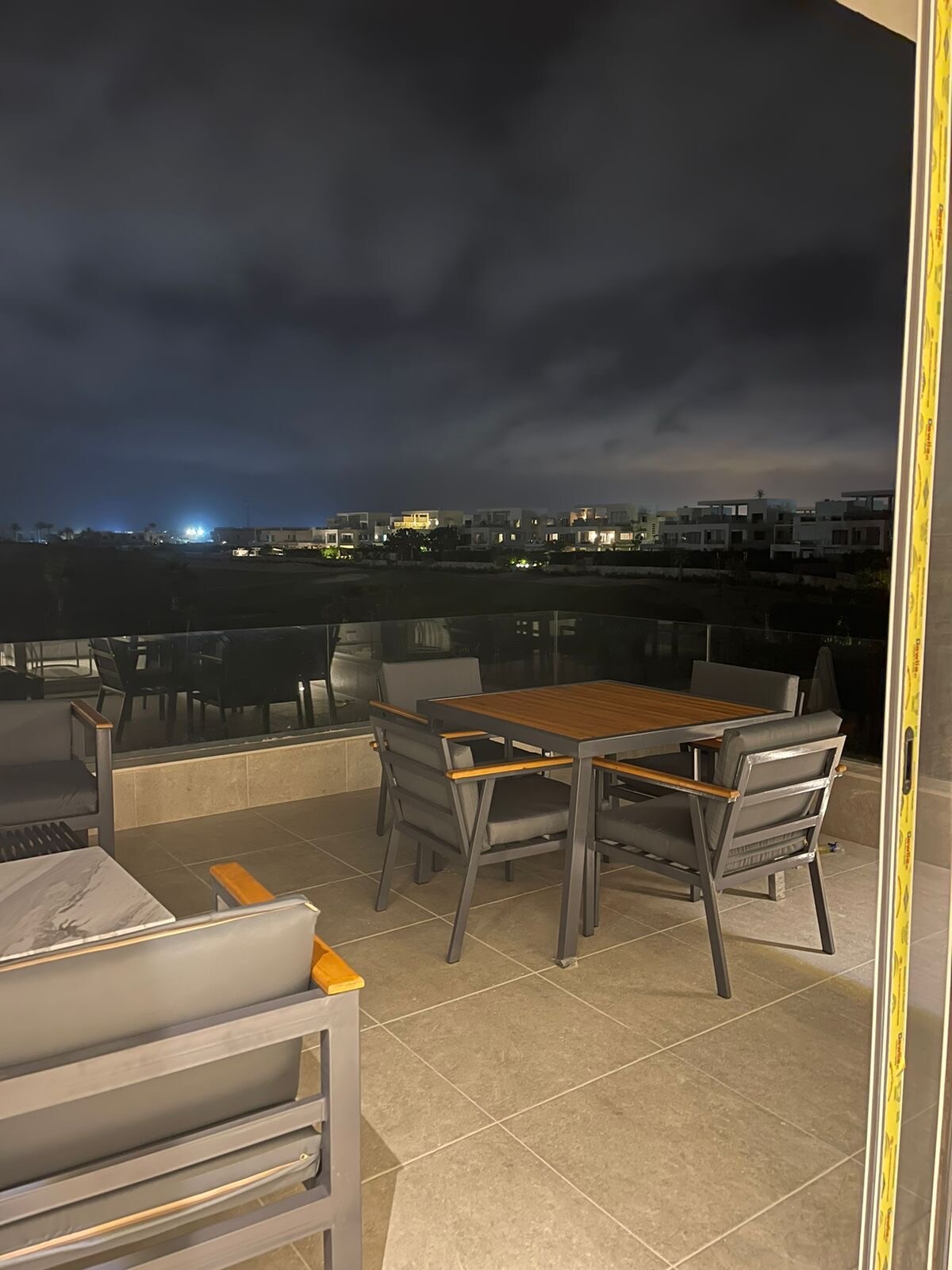 Fully Finished Ground Floor Chalet in Hacienda Bay, North Coast, Egypt. Spacious furnished 170 m² chalet with a 200 m² private garden, ideally located in the exclusive Hacienda Bay community. • 2 master bedrooms • 3 modern bathrooms in total • 2 stylish living areas with sofa beds, ideal for extra guests • Fully equipped kitchen • Elegant dining room • All bedrooms are air-conditioned • Direct view of the swimming pool • Access to all beaches and pools