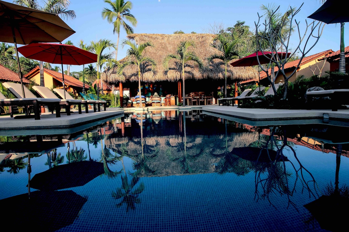 A beautiful tropical setting awaits you only two blocks from Zihuatanejo's most popular beach Playa La Ropa! Casita Rita our 1 bedroom with a kitchen and our two Bungalows, Bungalow Encantadora and Bungalow del Sol (available for rent separately) are situated around the central Palapa bar, dining and swimming pool area. All bedrooms feature AC, king size beds, luxury bedding, flatscreen TV's and beautiful outdoor showers! Free whole resort high speed WiFi! 2 adults 2 children.