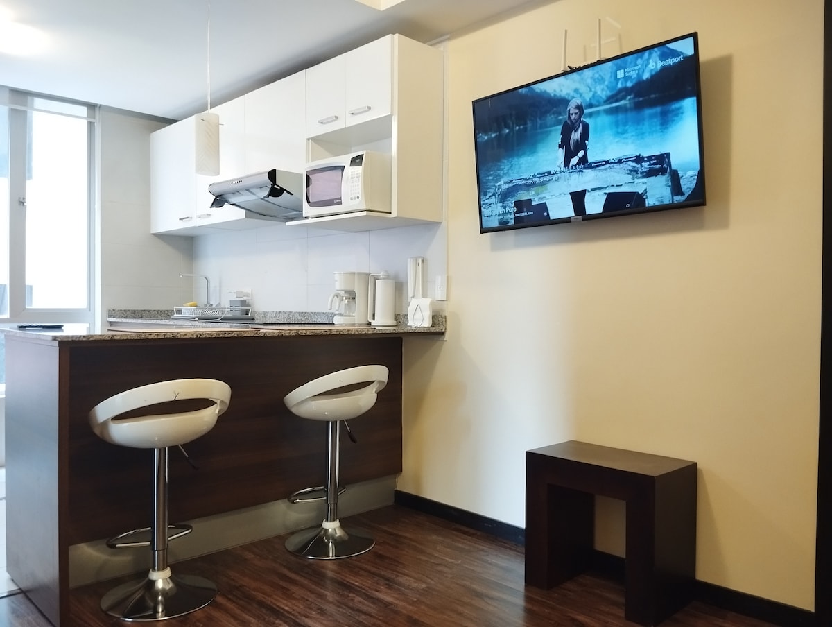 호텔 수준의 청결한 숙소 이전 AKROS 호텔의 10층에서 세련되고 품질 좋은 경험을 즐겨보세요. * * * * 주차는 포함되지 않습니다. - 초고속 와이파이 950Mbps - 알렉사 - 4K 스마트 TV 43인치 - 미니 냉장고 - 정수기 - 국내/국제 채널 - 스트리밍 앱 투티/주류점 5m 약국 10m 시라노 커피 20m 메가맥시 200m 슈퍼시네마 영화관 200m 칠리스/칼스 레스토랑 200m 캐롤라이나 공원 400m 아타우알파 스타디움 800m 퀴센트로 쇼핑몰 800m