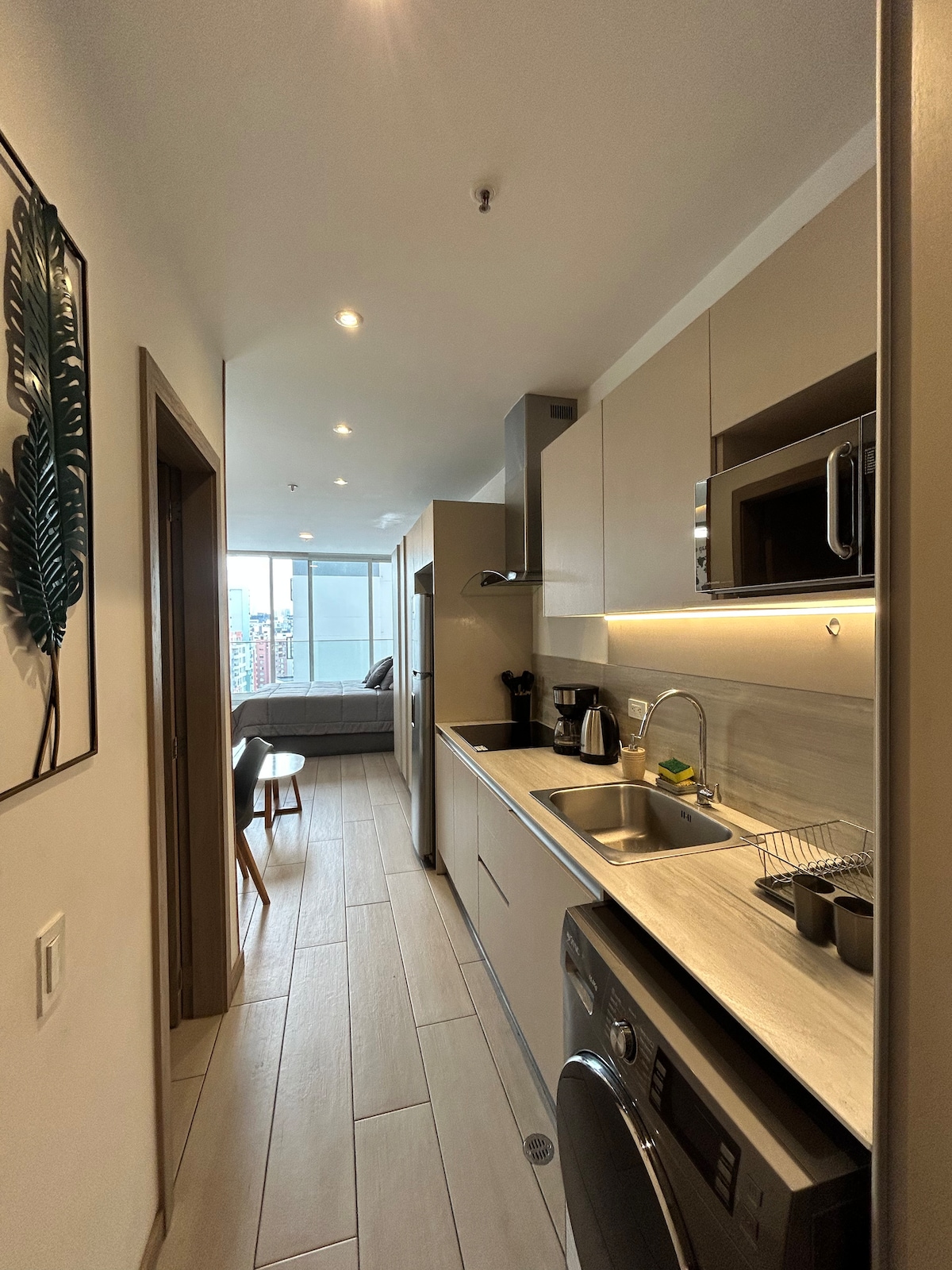 라 캐롤라이나 공원이 바로 보이는 14층에 위치한 현대적이고 새로운 스튜디오입니다. 스튜디오 편의시설: • 초고속 광섬유 와이파이 • 55인치 QLED 스마트 TV • 매우 편안한 침대 • 주방 시설 완비 • 모던한 욕실 • 스마트록 • 연중무휴 보안 사교 공간(17층): • 헬스장 • 와이파이가 있는 공동 작업 공간 • 게임룸 • 바비큐 공간 • 자쿠지(2박 이상 숙박 시에만 이용 가능) 최고의 위치, 키토 지하철, 쇼핑몰, 레스토랑에서 단 15분 거리에 있습니다.