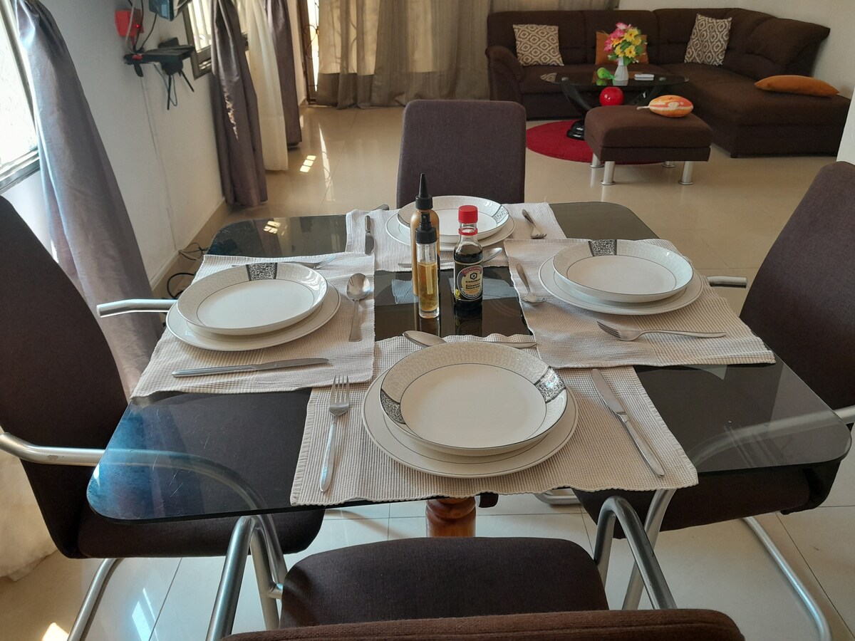 로메에 위치한 현대적인 아파트 숙소에 오신 것을 환영합니다. 아마다홈에 위치한 이 완비된 아파트에서 편안함과 스타일을 즐기세요. 로메 시내까지 25분, 공항까지 27분, 조용한 동네입니다. 야외 감시 카메라와 야간 근무 경비원. 렌터카 서비스를 이용하실 수 있습니다. 편안함과 공간에 대한 존중을 위해 모든 게스트는 한 번에 최대 2명의 방문객을 허용합니다. 양해 부탁 드립니다. {무료 와이파이, 물, 요리용 가스} 게스트는 전기에 대한 책임이 있습니다.