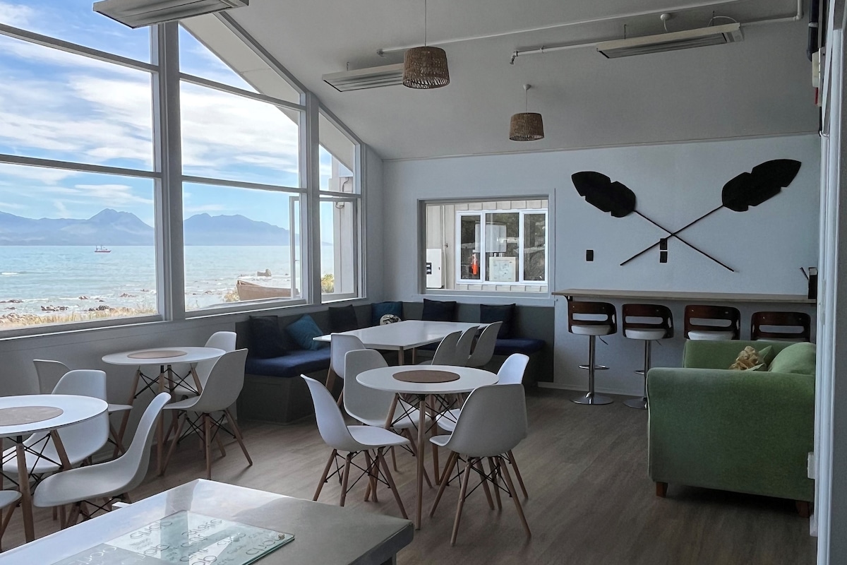 Room 10 is located on the 1st floor floor, with beautiful views overlooking the beautiful Gouches bay. A great room for budget conscious Single/Duo to soak up the atmosphere in a "home-away-from-home" with the most picturesque landscape views Kaikoura has to offer. We are an Iconic kiwi style hostel/lodge, steeped in history and located on Gooches beach (great for swimming and surfing) and only few hundred metres from the town, bars and eateries.