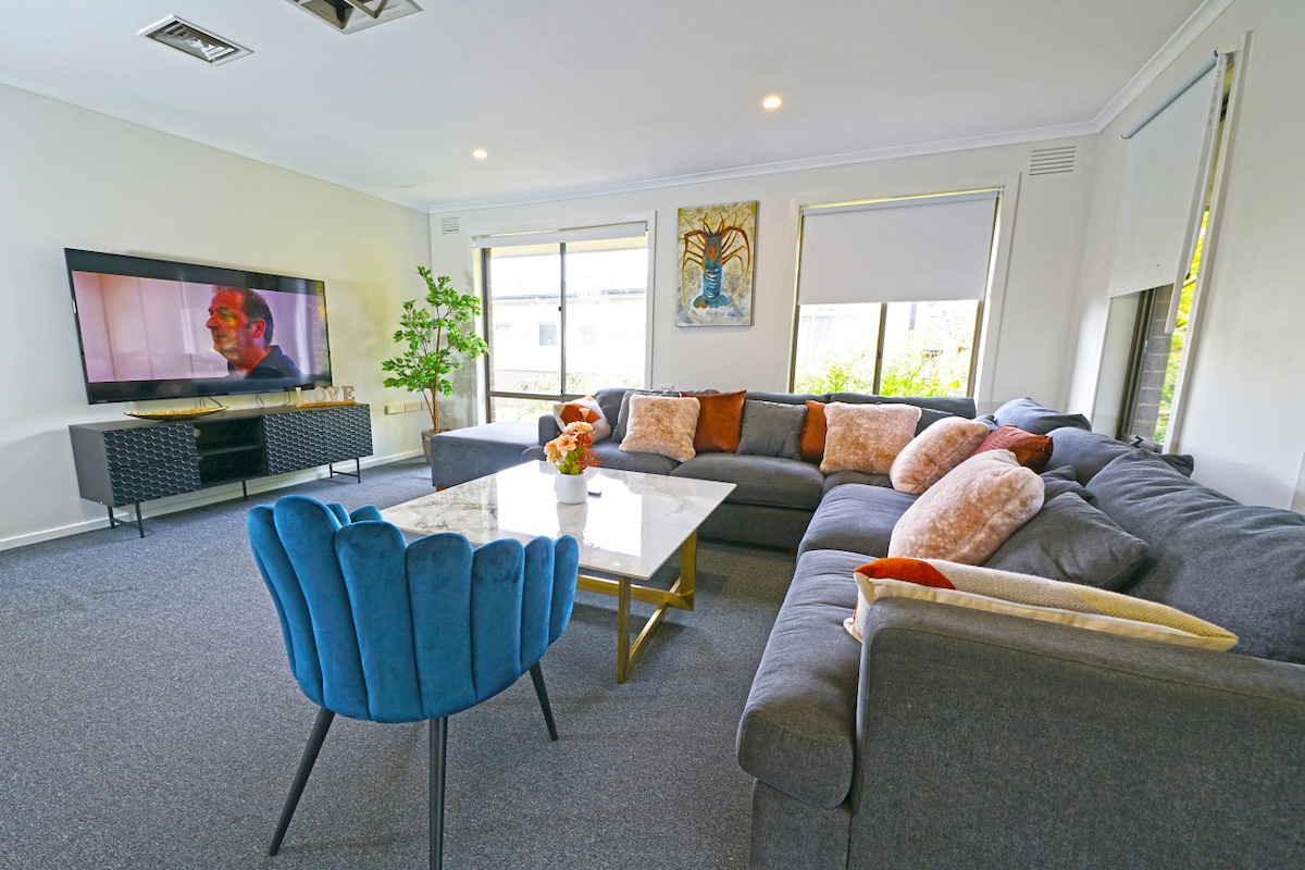 링우드 이스트에 있는 내 집처럼 편안한 숙소에 오신 것을 환영합니다! 이 아늑한 침실 2개짜리 숙소는 조용하고 나무가 늘어선 거리에 편안함을 제공하는 가족에게 완벽한 숙소입니다. 리노베이션된 인테리어를 즐기실 수 있으며, 게스트는 어린이 놀이 장비, 120인치 레이저 프로젝터, 테이블 게임, 시설이 완비된 주방을 이용할 수 있습니다. 별도의 화장실 2개와 세탁기 및 건조기가 있는 세탁실이 있어 편리함을 더합니다. 이스트랜드 쇼핑 센터, 링우드 이스트역, 링우드 레이크 놀이터에서 몇 분 거리에 있습니다.